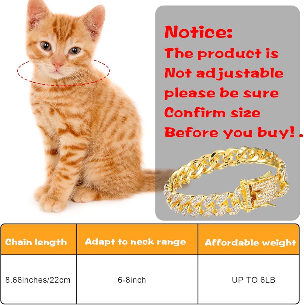 High-quality material: The diamond dog collar is made of metal and glass, showing luxury and fashion. Metal pet cat dog chain makes your pet the focus instantly. The cat chain collar is fashionable and sturdy, not easy to break, fade, scratch the skin or snag the hair