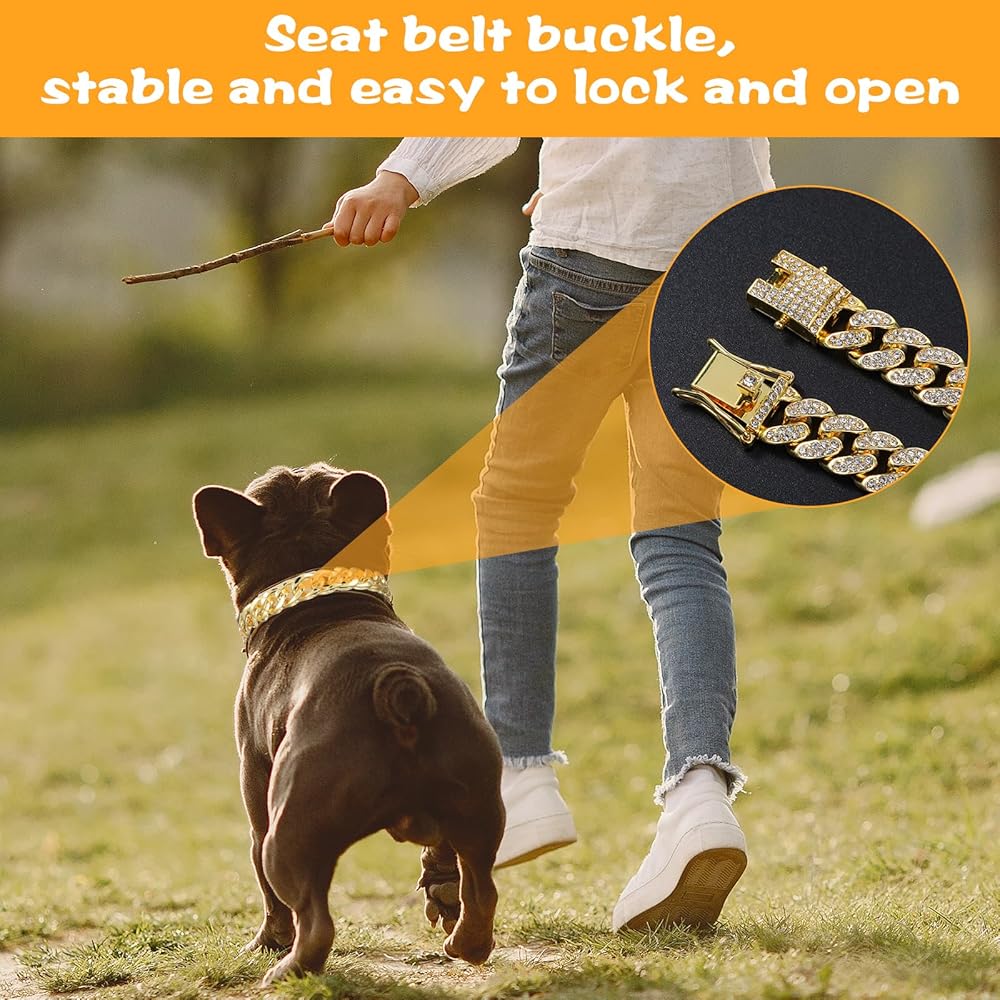 Lightweight: The diamond collar for dogs is 1.41 ounces/40 grams in both net weight and gross weight. The diamond link dog collar is light and does not press the body, making it more comfortable for pets to wear