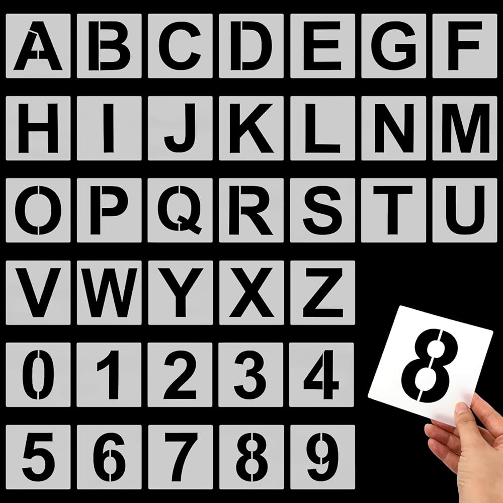 Packing list: This set of painting templates consists of 26 uppercase letters and 10 numbers. There are 36 in total, and the sufficient quantity provides unlimited creativity for your artistic creation. You can use them in any combination.