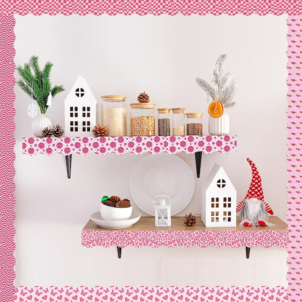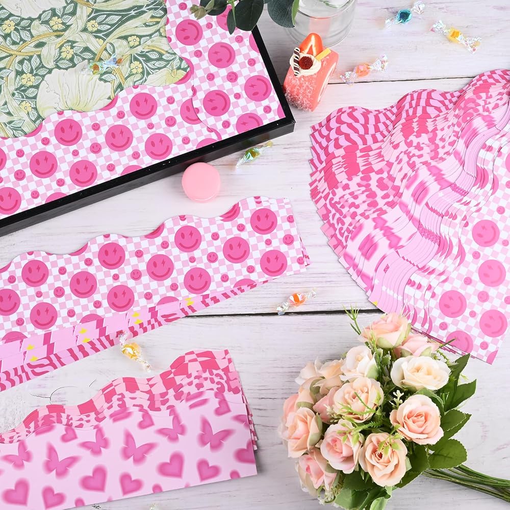 82Ft Preppy Bulletin Board Borders, Pink Lightning Leopard Butterfly Smiley Face Patterned Bulletin Trim Border Preppy Bulletin Board Stickers for Classroom Chalkboard School Office Party Decorations