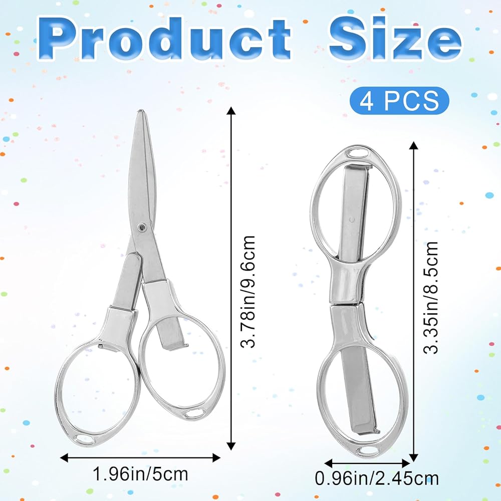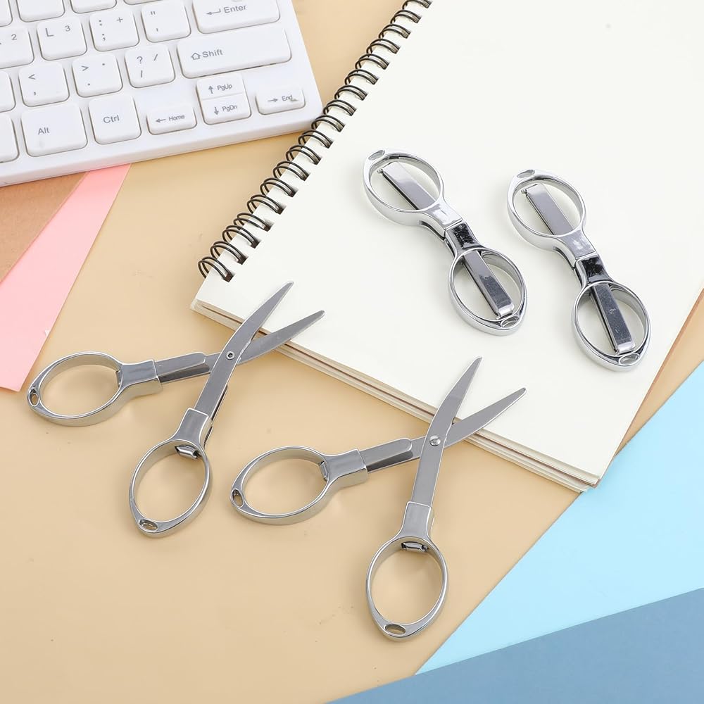4pcs Folding Scissors Safe Portable Travel Scissors Small scissors Stainless Steel Retractable Scissors Mini Shear Telescopic Safety Cutter Small Pocket Christmas Gift for Home Office Fishing Sewing