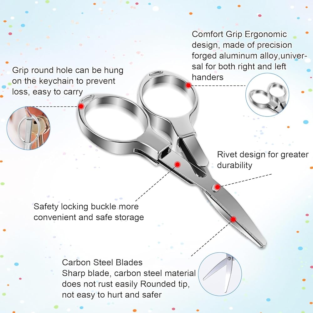 【High-Quality Materials】Folding scissors are made of silver zinc alloy material, mini scissors are durable and stylish, mini box cutter measures approximately 3.35 × 0.96 × 0.2 inches/8.5 × 2.45 × 0.5 cm, crochet scissors are a space-saving addition to any toolbox.