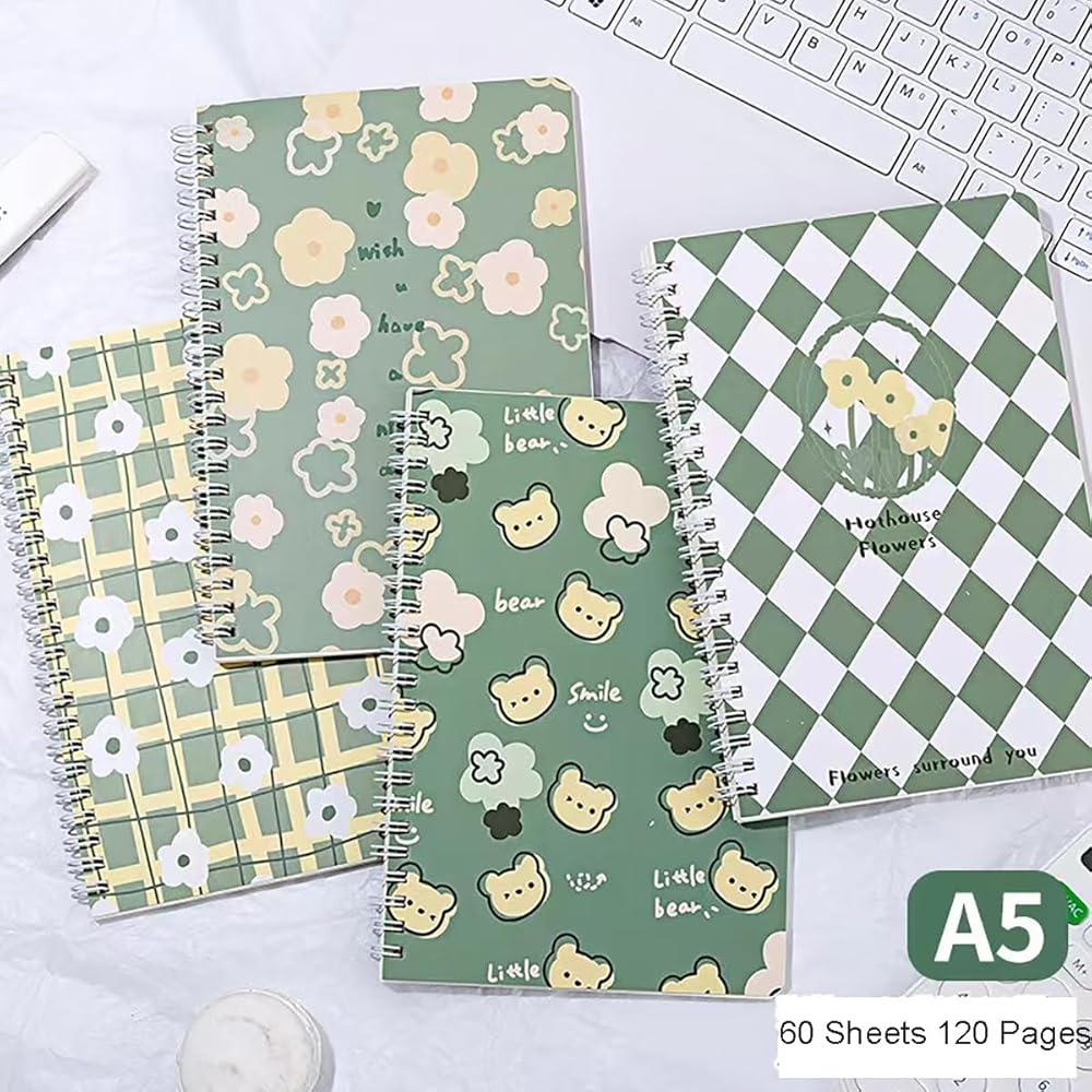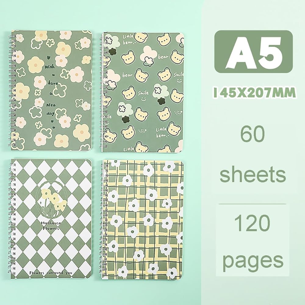 مجموعة دفتر Kawaii Spiral: تتضمن كل مجموعة 4 تصميمات زهرة خضراء لطيفة متنوعة (كما تظهر الصور). خيار رائع للعودة إلى مجموعة المدرسة