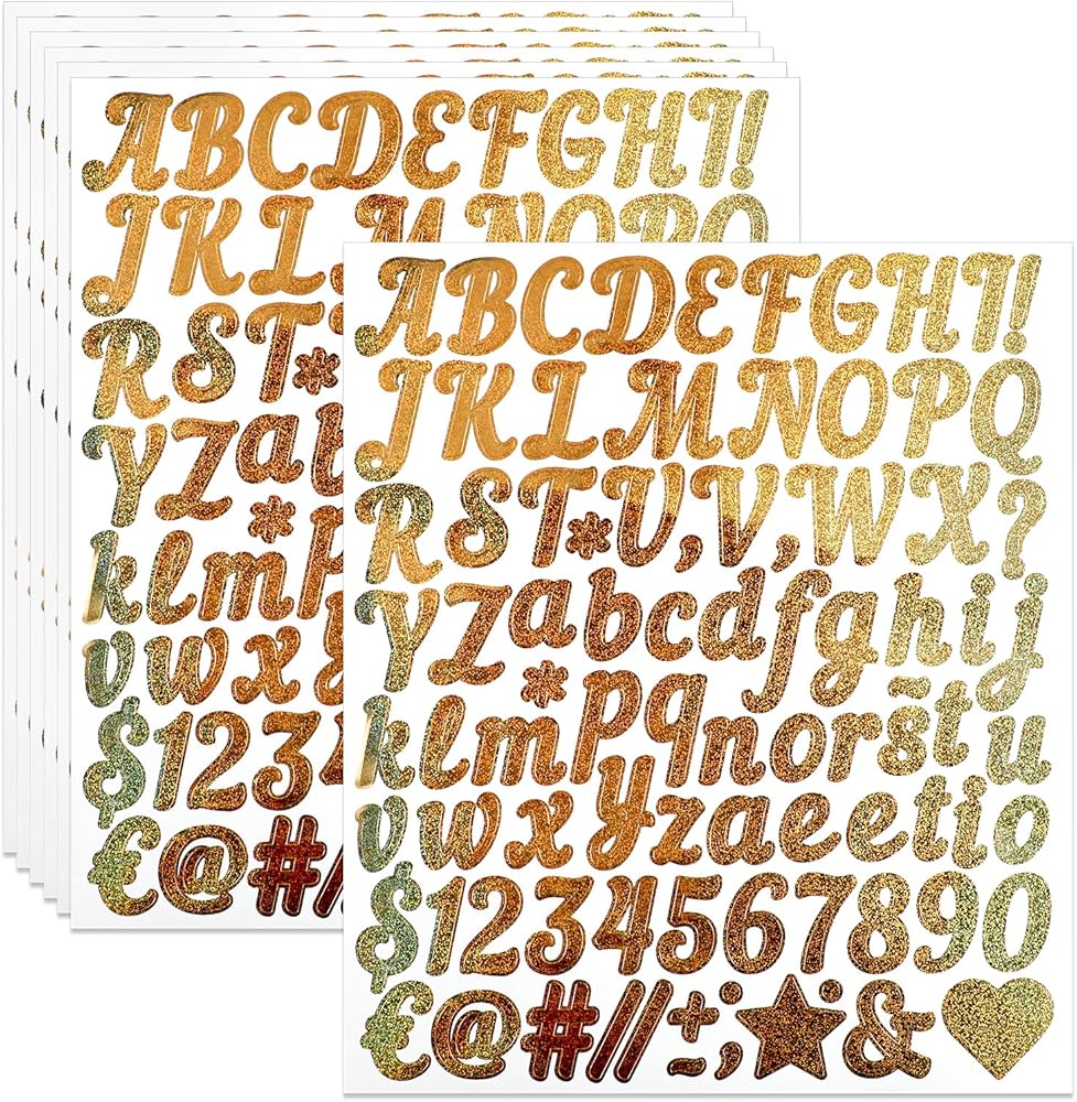 VALUE PACK: Gold letter stickers set includes 15 sheets with 1245 pieces of Self Adhesive Glitter Alphabet Letter Stickers. Each sheet contains 390 capital letters, 390 lowercase letters, 150 numbers, and 315 symbols. Gold alphabet stickers abundant quantity to meet your daily use requirements and DIY needs.