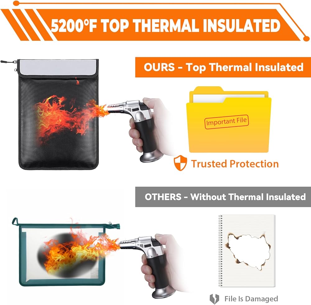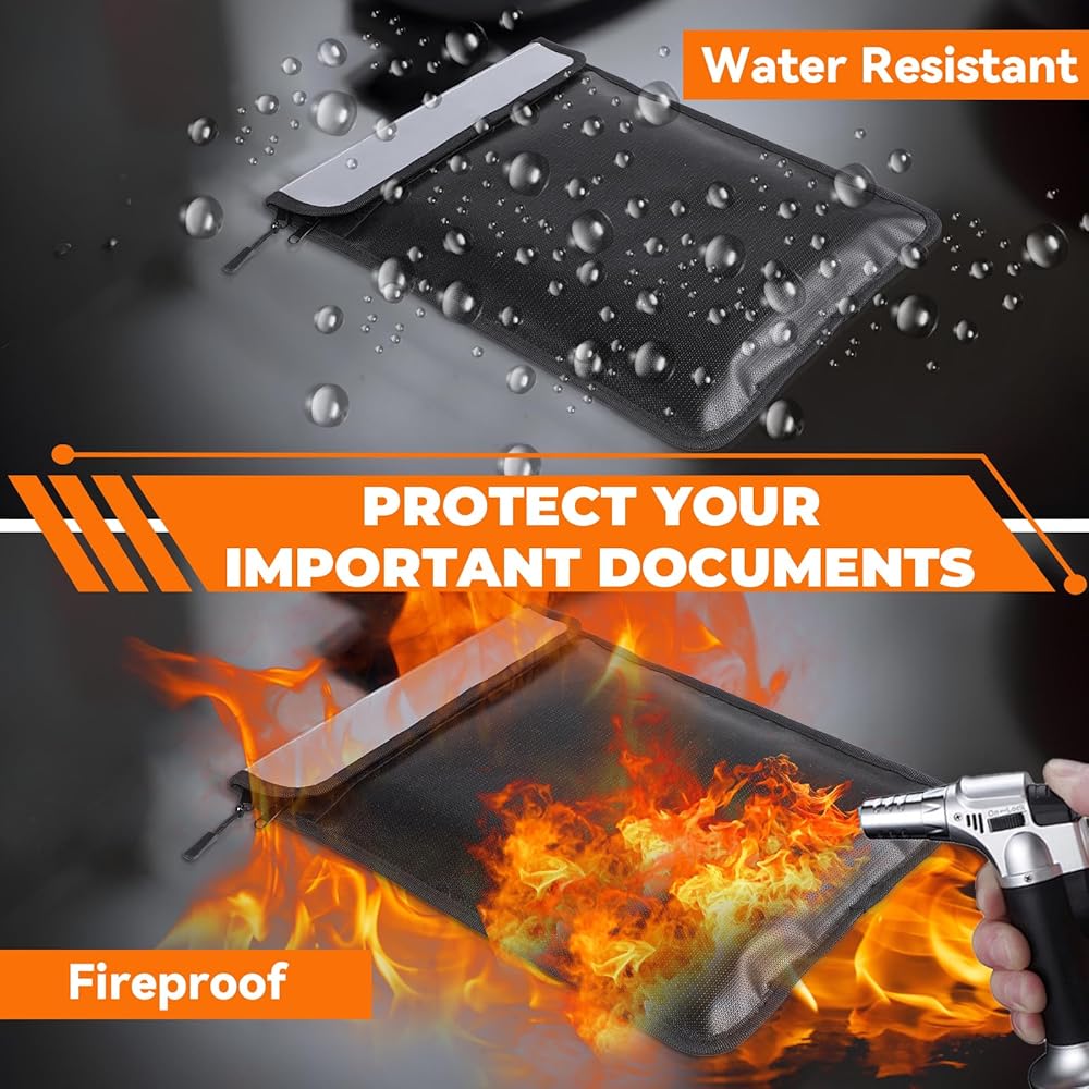 【Trustworthy Protection】- You will receive 2 pcs ireproof document bag. Recommended by professional firefighters and tested in the most demanding environments; This large 15x11 inch fireproof document bag allows you to better protect your cash, important documents, and more.