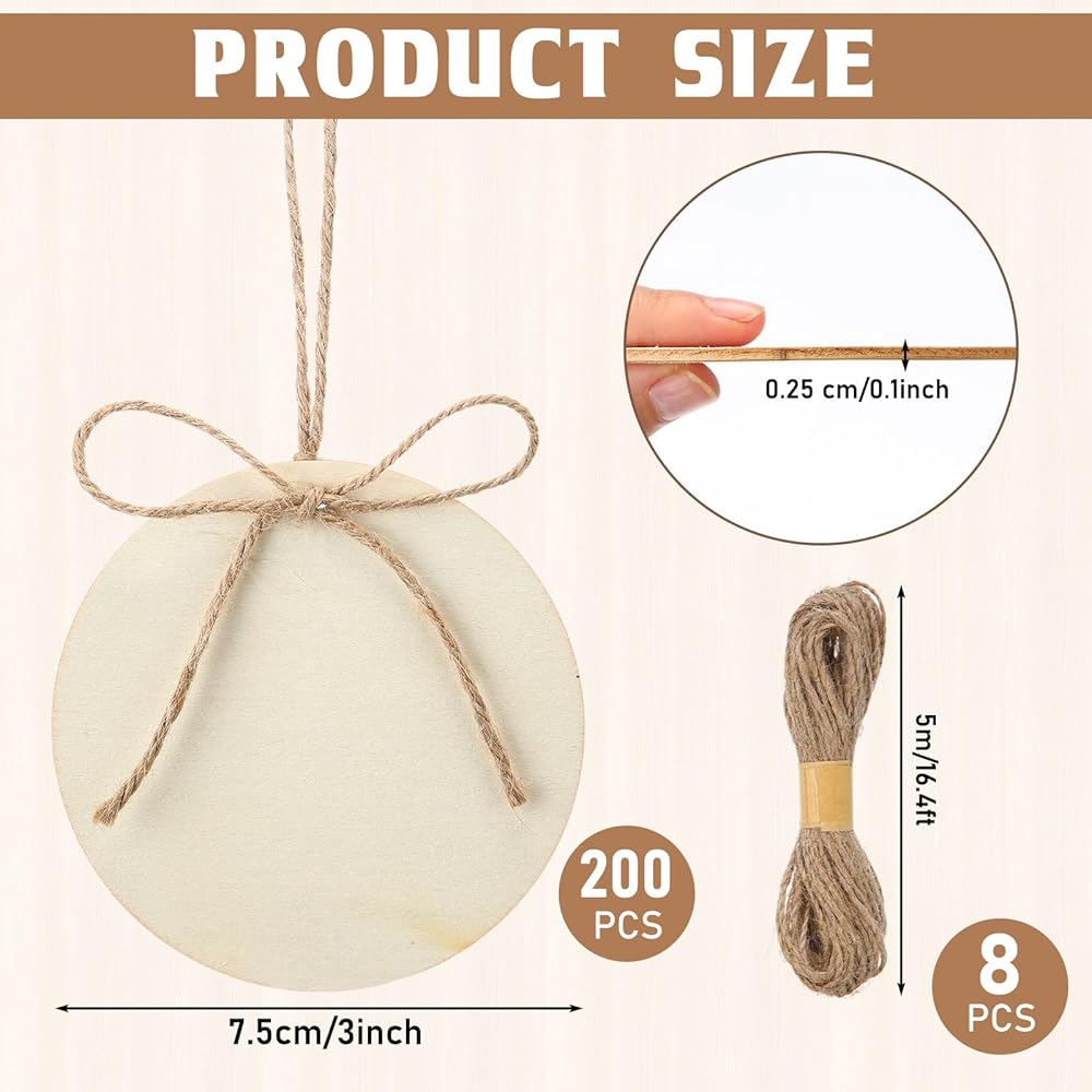 Wood circles: about 4 inches in diameter and 0.08 inch in thick