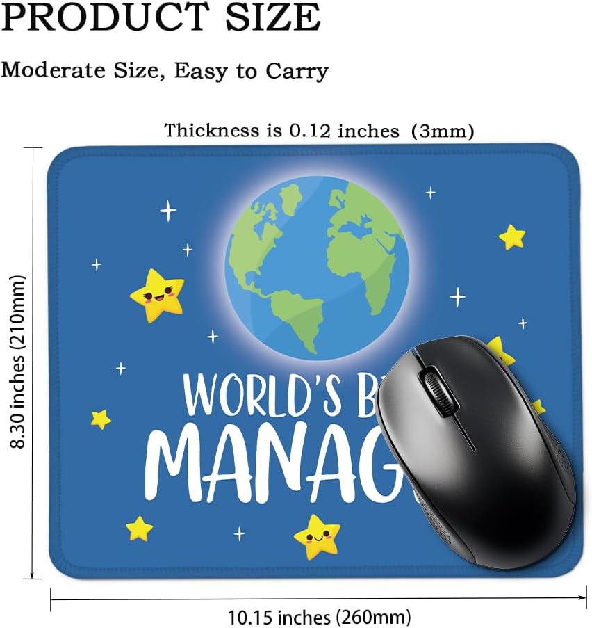【Product Size】The size of the mouse pad is 10.15 x 8.30 x 0.12 inches(260mm x 210mm x 3mm).The rectangular and thickened design is suitable for all types of mice and provides you with ample work space. The weight of the mouse pad is 0.22 pounds, lightweight and portable.