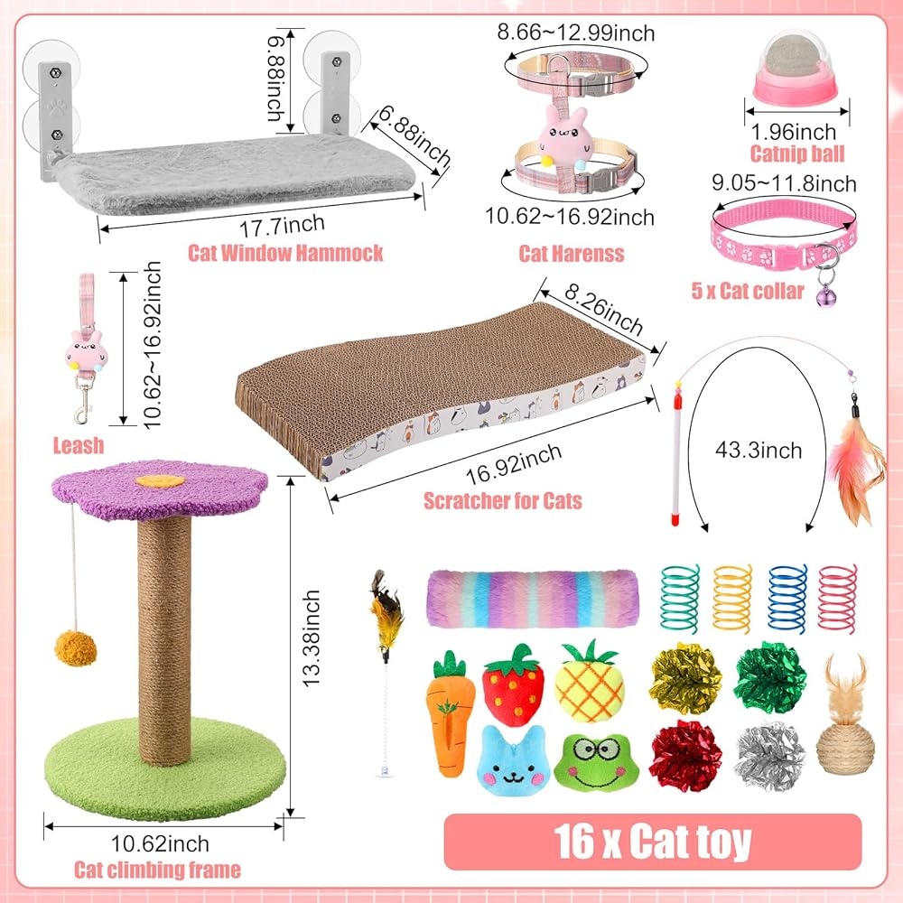 إكسسوارات الراحة للقطط: يتم تلبية راحة هريرة الخاصة بك بشكل جيد ، مع سرير قطة للراحة ، أرجوحة قط مع كوب شفط للحصول على هبوط ممتع ؛ مع إجمالي 40 قطعة من الأشياء ، ستغطي مجموعة بداية هريرة احتياجات قطتك عندما تصل إلى المنزل ؛ المجموعة توفر لك الوقت وتتيح لك تكريس المزيد من الطاقة لرعاية قطتك