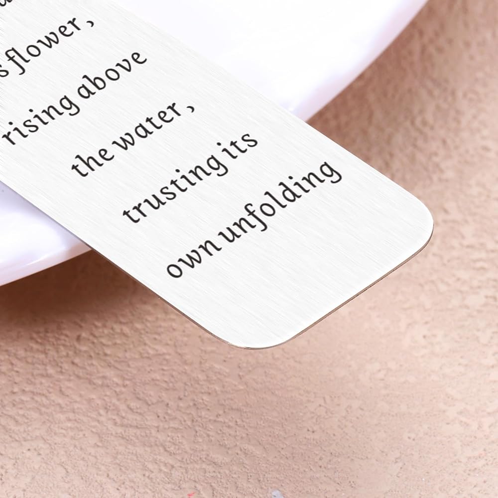 • 【Inspirational lotus bookmarks for book lovers】product Size: 5.11*1.02 inch; thickness: 0.02inch. Made of stainless steel material; smooth surface with good touch feeling. No rust, no fading. Sturdy and strong enough to last long time! An exquisite bookmark with beautiful lotus pattern comes in a nice gift box, good for giving. Whether you're giving this gift to someone else or treating yourself to a fresh start, it is sure to inspire hope and renewal. Inspirational gifts for women girls.
