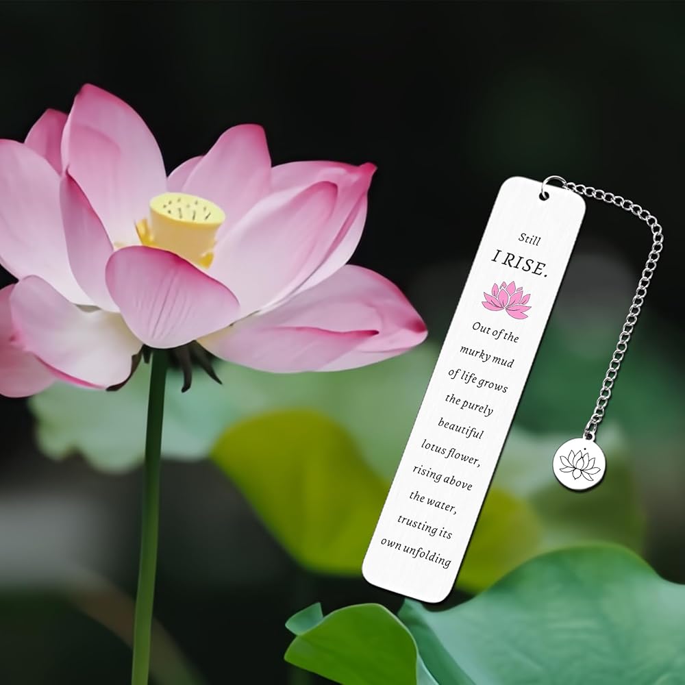 • 【New beginnings gifts for women】"still I rise. Out of the murky mud of life, grows the purely beautiful lotus flower, rising above the water, trusting its own unfolding." This beautiful lotus bookmark is suitable for those embracing fresh starts. Meaningful gifts for women, girls, friends, bff, bestie, sister, daughter, mom, grandmom, boss lady who is starting their new chapter of life. New beginnings gift, new beginnings gifts, new beginnings gifts for girls, next chapter gifts for women.
