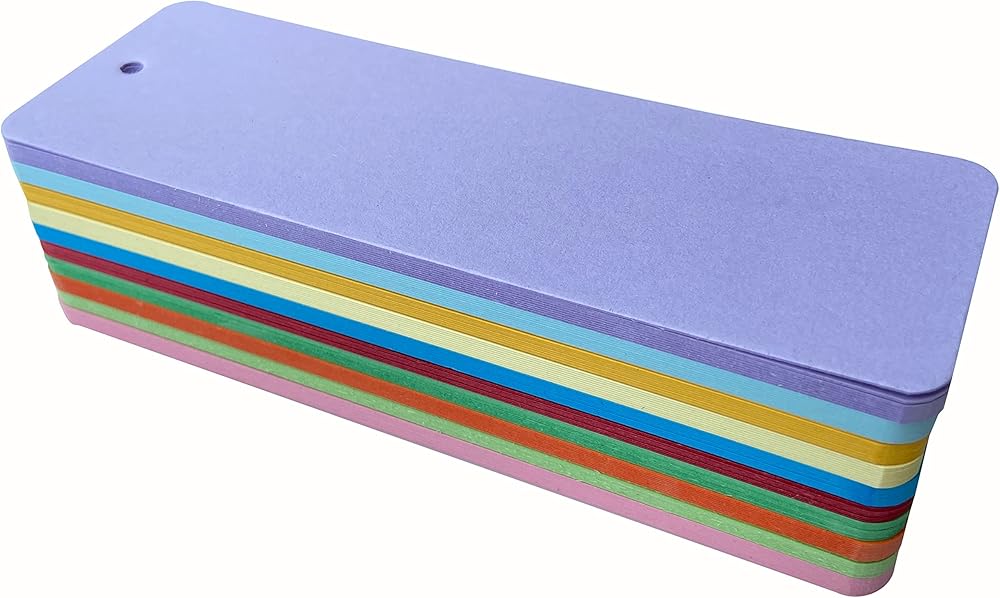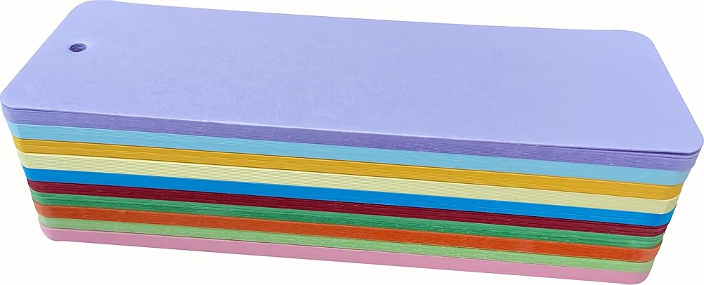 The bookmarks are made from high-quality paper, 300 GSM thick cards are sturdy enough. A small hole at the top of each bookmark lets you add a tassel or ribbon to your original bookmark design. (tassel and ribbon are EXCLUDED)