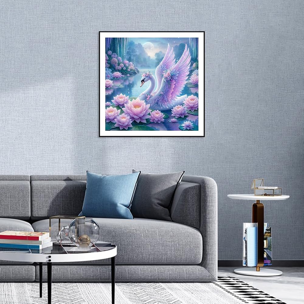 مجموعات الطلاء الماس Acudotr Swan للبالغين ، مجموعات فن الماس 5D DIY للمبتدئين ، مجموعات الطلاء الكاملة للحفر الماسي لديكور الجدار المنزلي ، 12 × 12 بوصة