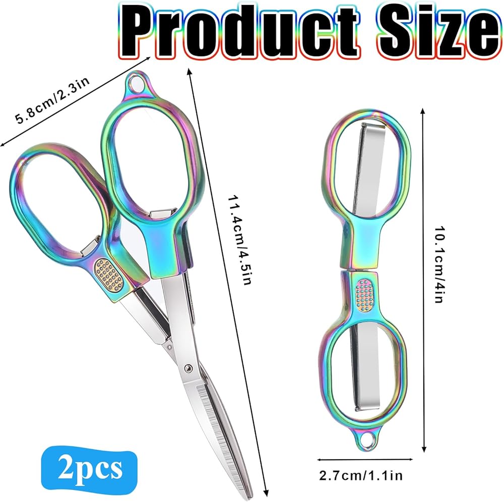 Size: The unfolded size of our foldable scissor is 11.5cm/4.52inch; the length after folding is 10cm/3.93inch. The scissors are small and light and can be folded, so you can carry them with you for daily use