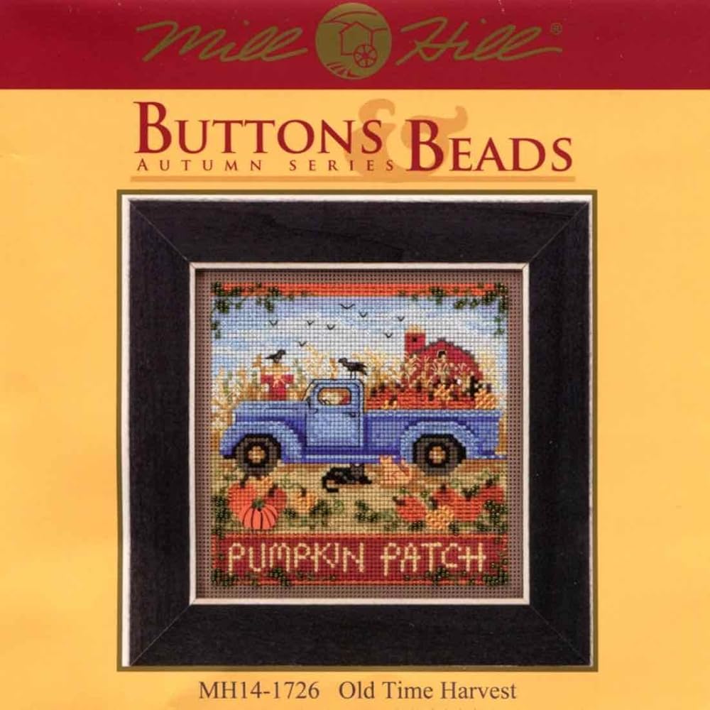 Buttons and Beads Autumn Series 2017 Approximate design size is 5.25" x 5.25" (13.34 cm x 13.34 cm) Includes Mill Hill Glass Beads, Mill Hill ceramic button, 14 ct perforated paper, floss, needles and chart.