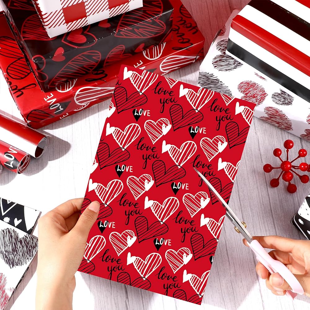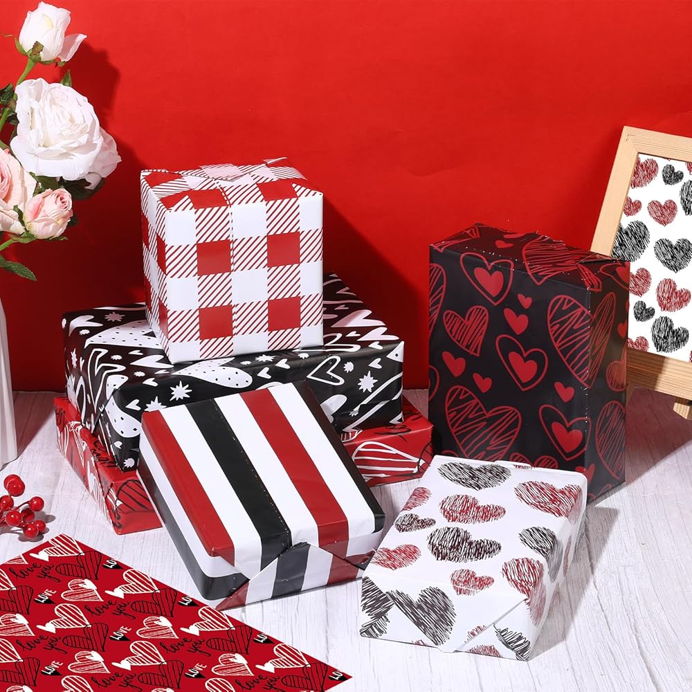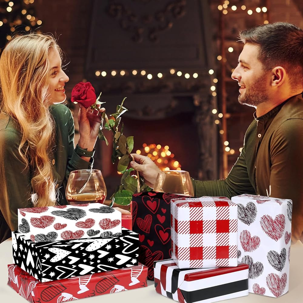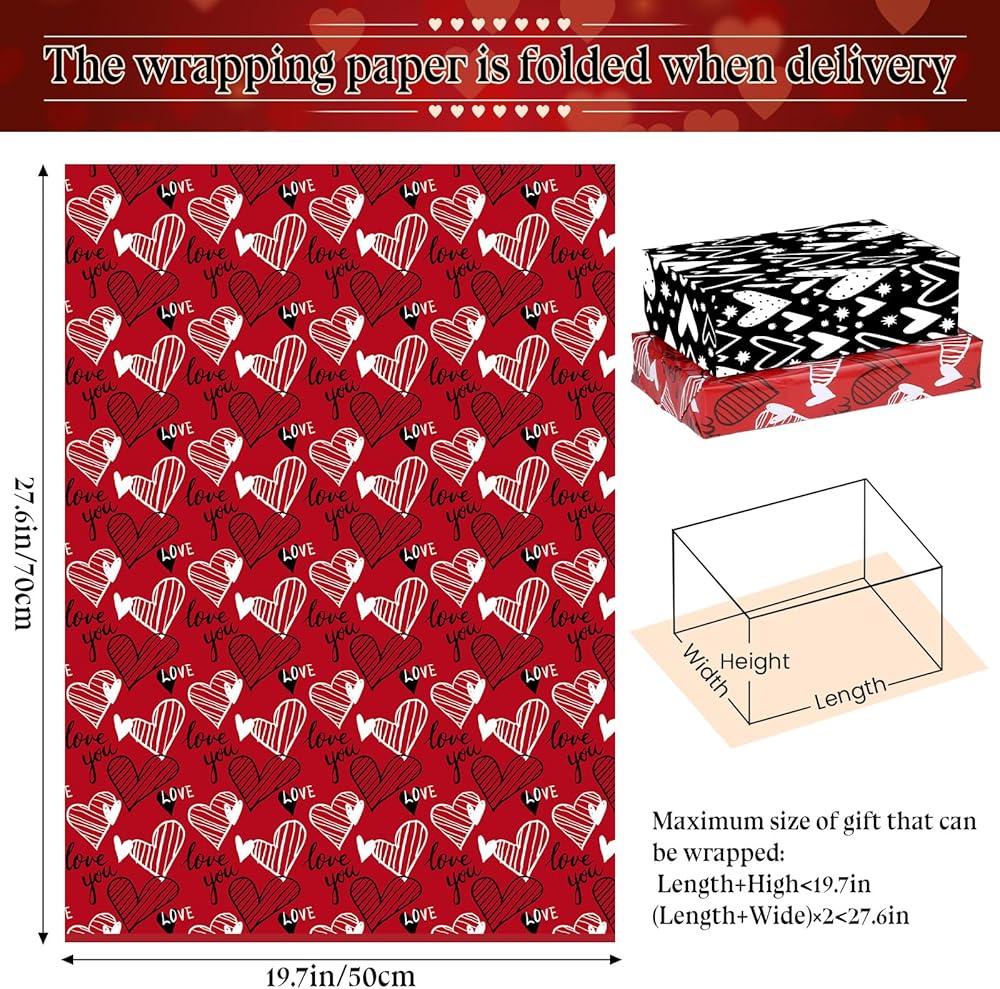 التصاميم متعددة الاستخدامات والاحتفالات: اعجب شخصًا مميزًا مع ورقة التغليف الخاصة بنا التي تتميز بمزيج ساحر من القلوب في نظام ألوان أسود وحمراء مذهل. سواء كان ذلك لزوجة أو زوج أو صديق أو أحد أفراد الأسرة ، فإن أنماط القلب الكلاسيكية تشع الحب ، مما يجعلها مثالية لعيد الحب والذكرى السنوية والمزيد