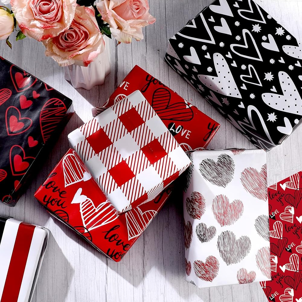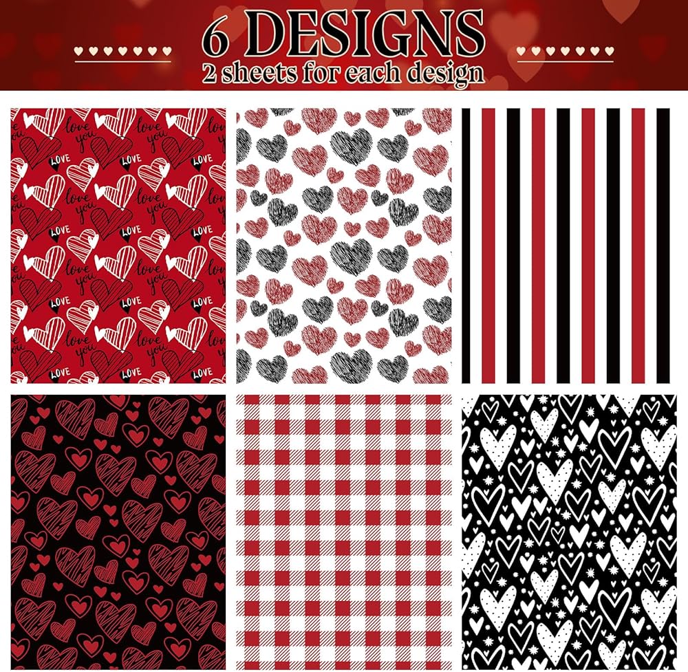 PLUK PACK OF VALTENTE DAIM PAID: استلم 12 ورقة من ورق النحاس عالي الجودة ، كل منها مزينة بتصميمات قلبية ، مما يضمن أن يكون لديك ورقة تغليف كافية لمواجهة العديد من الهدايا. من خلال 6 تصميمات فريدة وملاحة لكل تصميم ، تسمح مجموعتنا بعرض تقديمي متنوع وساحر لأحبائك