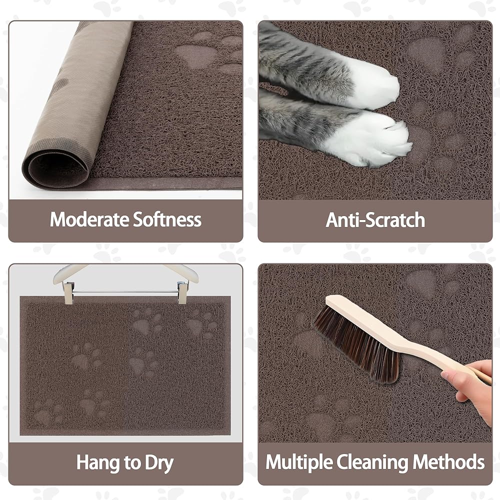• EASY TO CLEAN: The special mesh design makes it easy to catch all the scattered cat litter and also cleans up stains to keep your cat's paws clean. Just shake it off, vacuum it, or wash it with soap and your mat will be as good as new!<br>