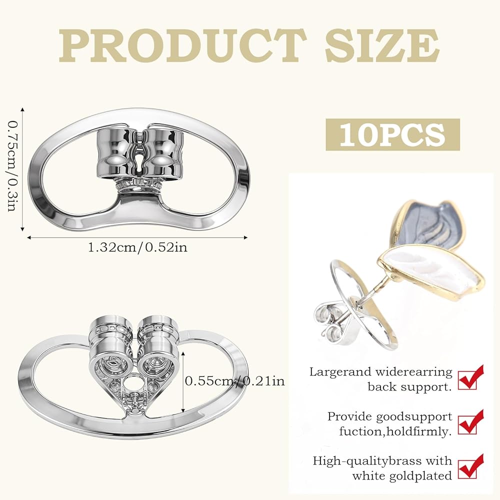 【Quantity of Products】A total of 5 pairs (10 pieces) of high-quality earring backings were received, which are specially designed to support heavy earrings and lift drooping ears. Earring support patches ensure comfortable and safe wearing.