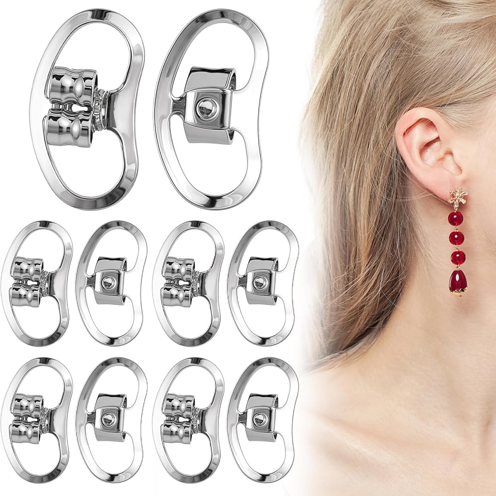 10 Pcs Metal Earring Backs Adjustable Earring Lifters Earring Backs Replacement Secure Earring Backers Heavy Earring Support Backs for Studs Droopy Earlobe Hoops