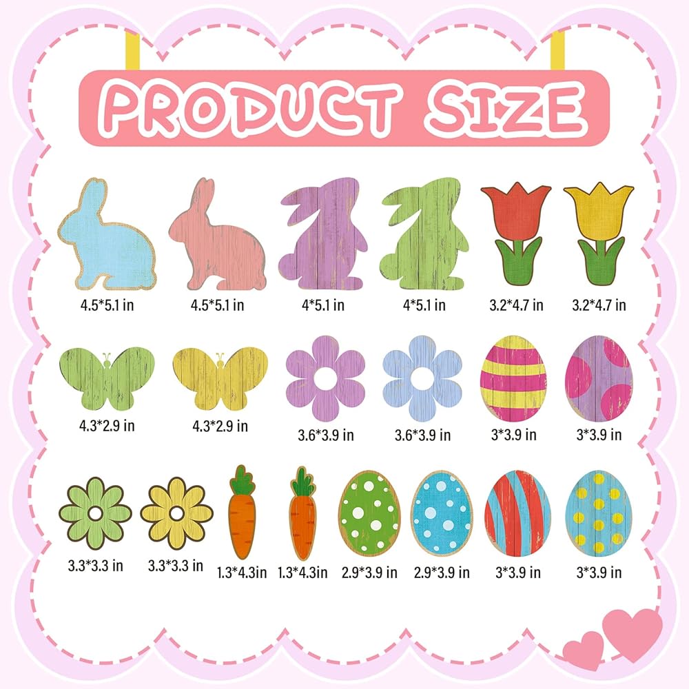 • Easter Bulletin Board Set: you will receive 60 pieces of rustic paper Spring cutouts in 20 different styles, including different colors and sizes, and 100 pieces of adhesive dots in total, easy to stick these cutouts on handicrafts to make cute presents for families; Sufficient quantity and lovely design can meet Easter decorative needs