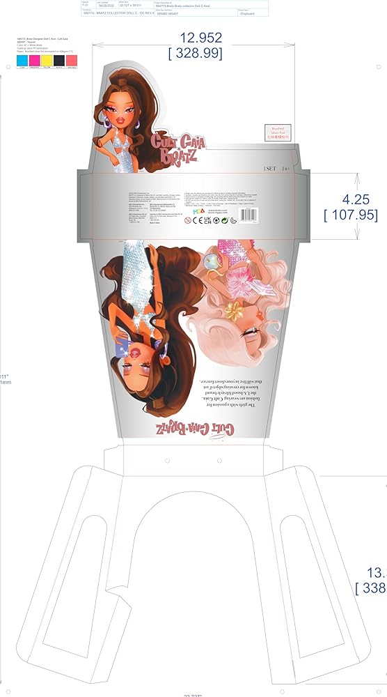 PREMIUM PACKAGE: The geometric trapezoid box has a foil finish, arched display window, glam character art and silver molded Bratz chain handle.