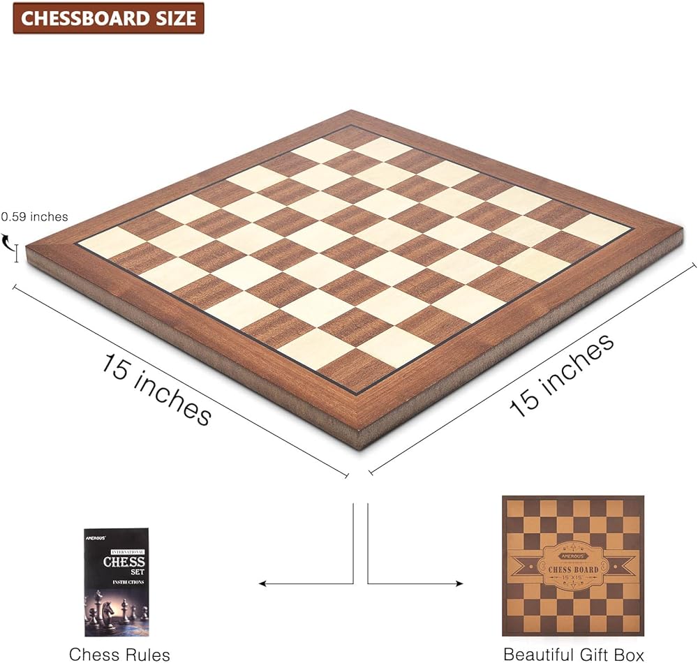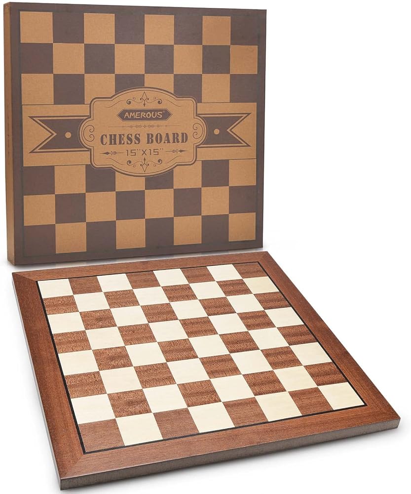 Ameruter 15 '× 15' لوحة شطرنج خشبية لا توجد قطع ، شطرنج البطولة الاحترافية فقط مع حزمة الهدايا - قواعد الشطرنج ، لوحة الشطرنج المحمولة للمبتدئين ، الأطفال ، البالغين