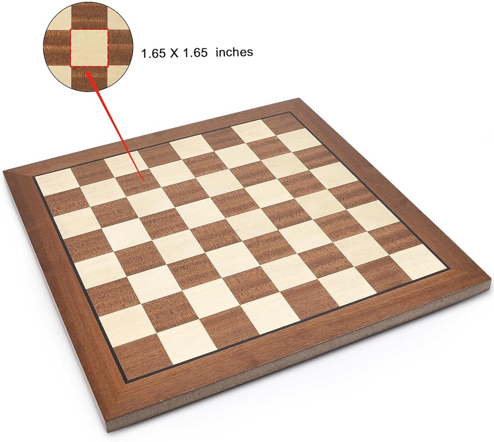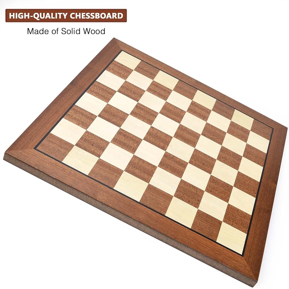 • DURABLE MATERIAL - The chess board only is made of high material wood, which has higher moisture resistance and durability. After polishing, it is more scratch and stain resistant. Durable and smooth to the touch. Traditional chess games have been very popular because they are simple enough. You will love playing chess even more because of the advanced material