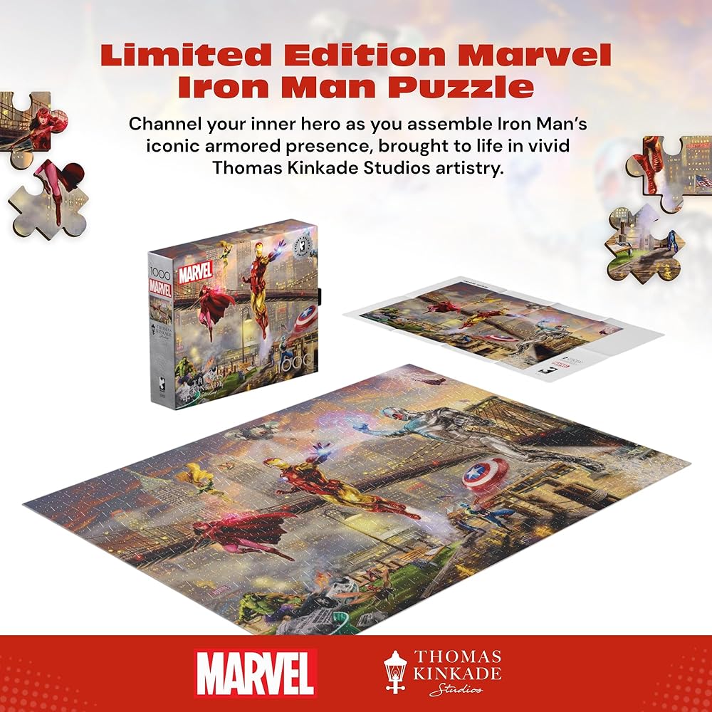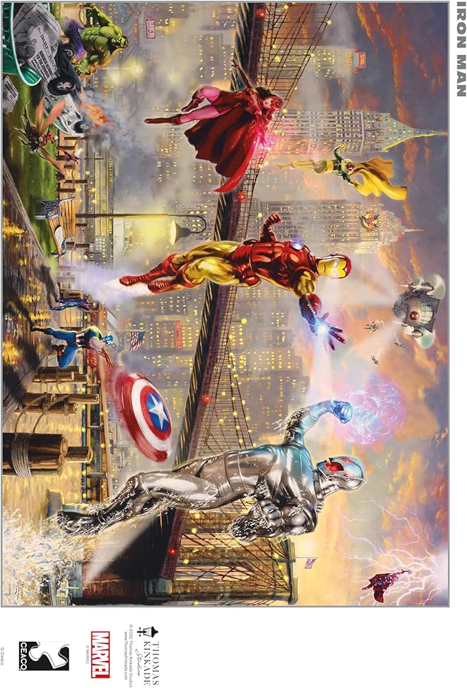 Ceaco- Silver Select - Marvel Kinkade - Iron Man Limited Edition Canvas - 1000 قطعة بانورامزو للبالغين - اللغز الصعبة مثالية لليالي اللعبة