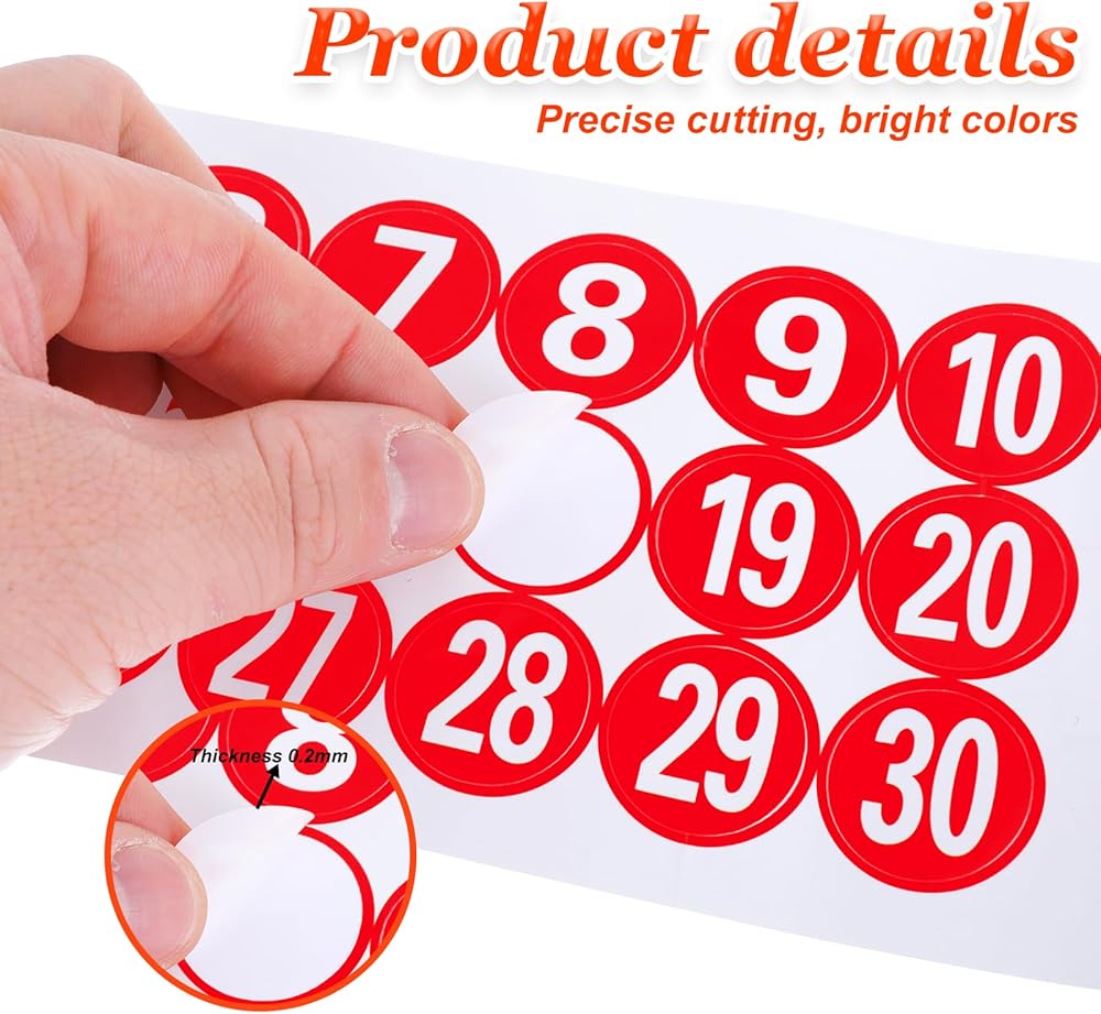 Package Included: You will receive 1 set of vinyl number stickers, each set contains 30 numbers ranging from 1 to 30, sufficient quantity and various colors to meet your various needs.