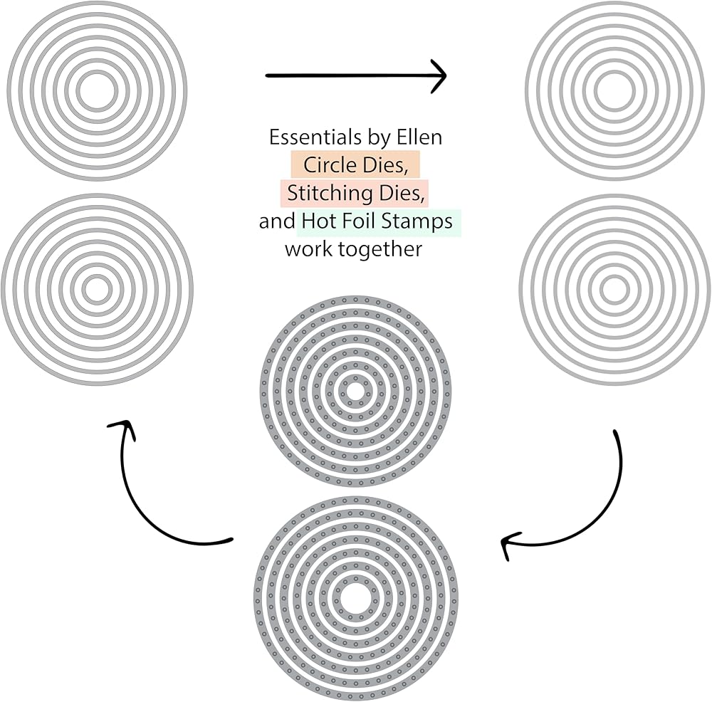 قم بإقران هذه الدوائر الأساسية للموت في مجموعة مخيط مع مجموعة Die Directions الأساسية والدوائر الأساسية طابع إحباط ساخن لمزيد من التنوع. قم بإنشاء كرات رياضية ، وحلي ، فقاعات ، أقواس قزح (عند قطع الدوائر إلى النصف) ، وأكثر من ذلك! هناك أشياء دائرية ودائرية في كل مكان!