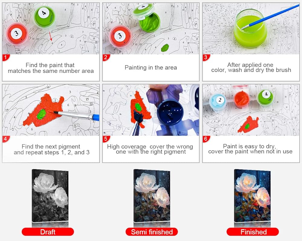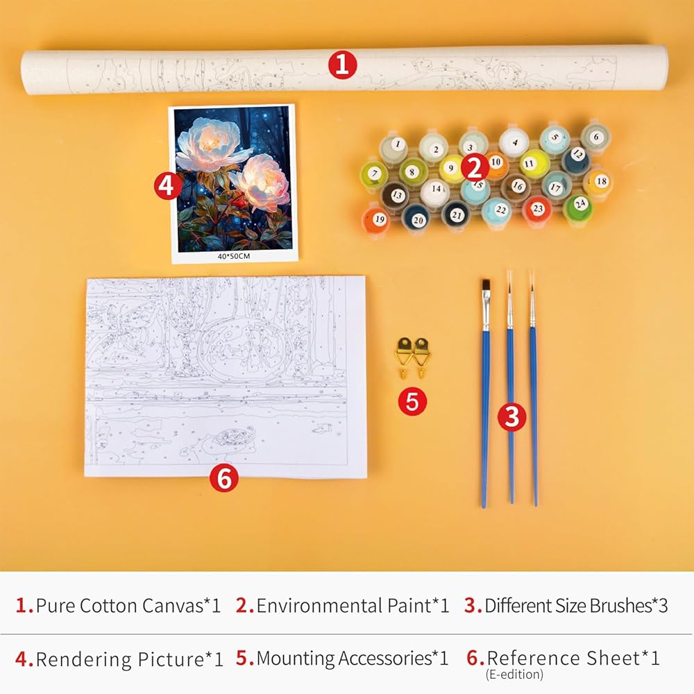 【الطلاء بواسطة مجموعات الأرقام】 الطلاء بواسطة مجموعة الأرقام تضمنت 16 "x20" (40x50 سم) قماش مرقمة ، 3 فرش ، مجموعة واحدة من الدهانات الأكريليك لطلاء القماش. يمكنك الطلاء مباشرة دون الحاجة لإعداد أدوات إضافية.