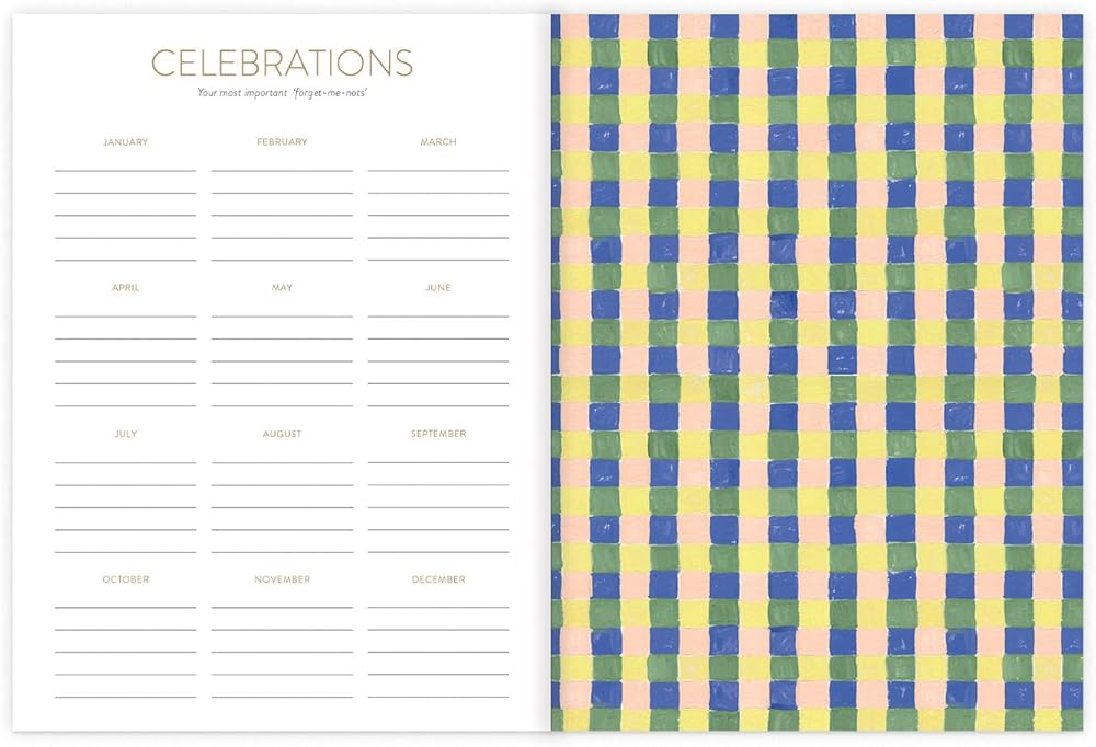 Includes a premium embossed soft cover with full foil details and full color liners and contains 40 pages; Includes year at a glance, celebrations, and schedule sections