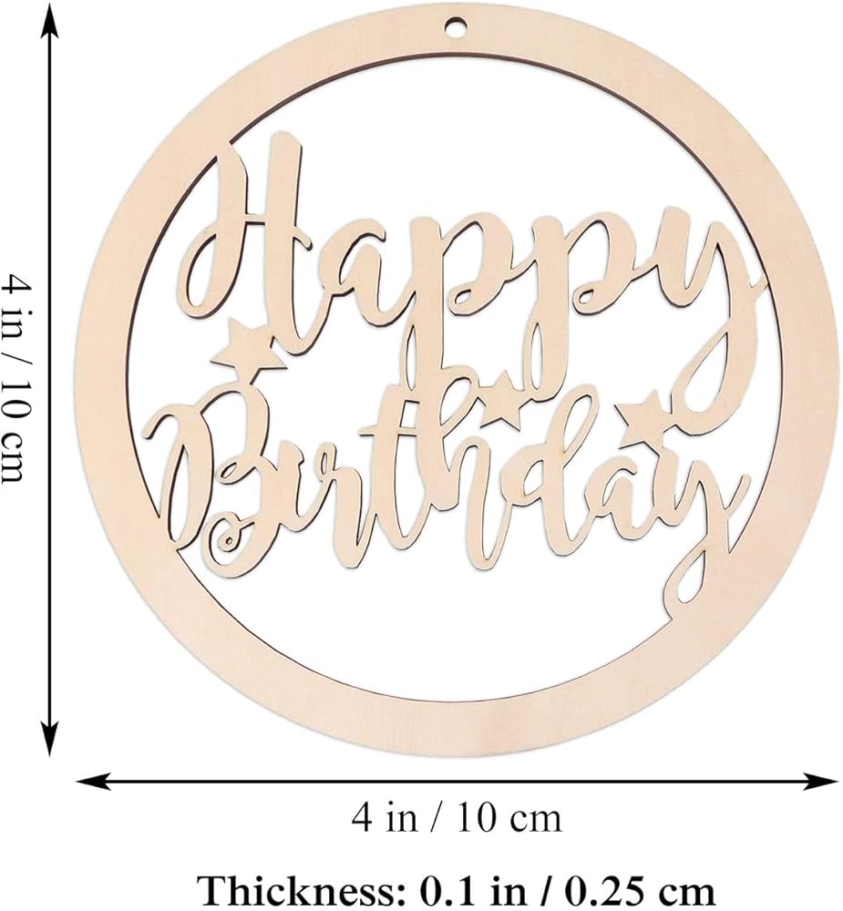 FEATURE: Wooden blank happy birthday round shaped design hanging ornaments, with a hole and rope, can be used for hanging decoration. Perfect for using as tags, party board, classroom board.