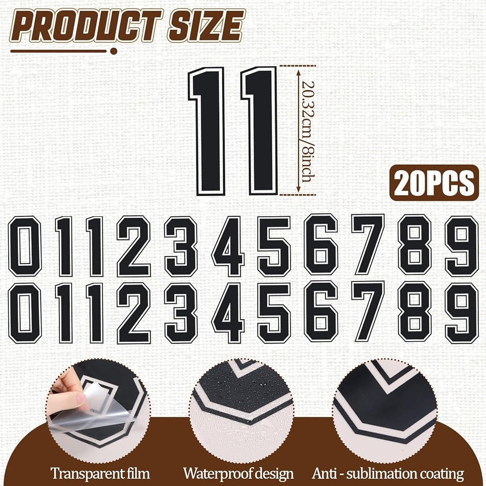Ideal Fit Size: Each number measures approximately 8 inches tall, making them perfect for team uniforms and jerseys. The black font with a stylish border design ensures they stand out, boosting team spirit and player recognition