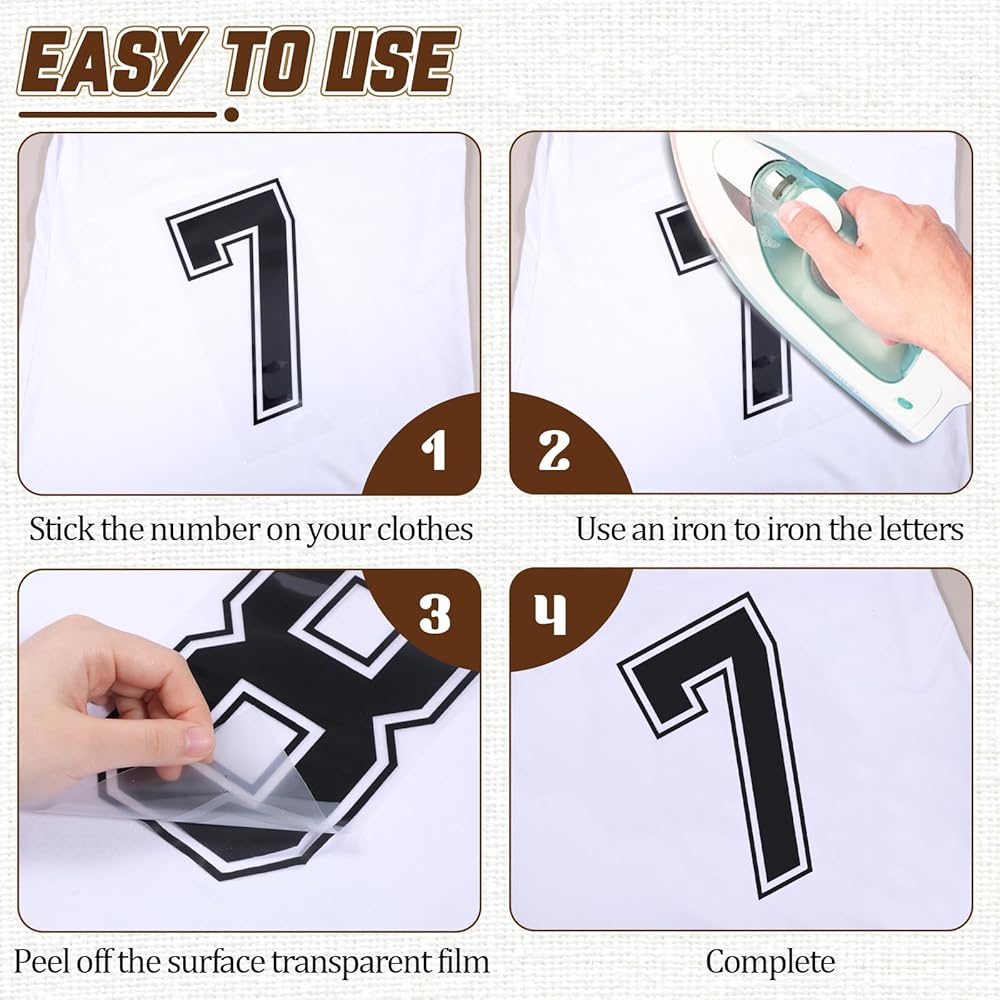 Easy Application: Simple to use, just place the iron on number patches on a flat piece of clothing, press with a heat transfer machine or household iron at 284-320 degrees Fahrenheit for 10-15 seconds, and peel off the film once cooled. Suitable for beginners and experienced users alike