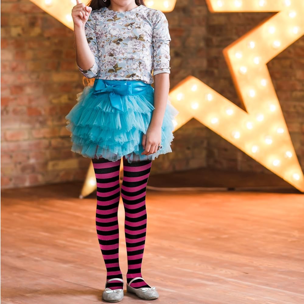 Value Set: You will receive 3 pcs girls striped tights, black pink, black yellow, black purple, suitable for girls over 10 years old, to meet your daily wear and replacement needs for different occasions