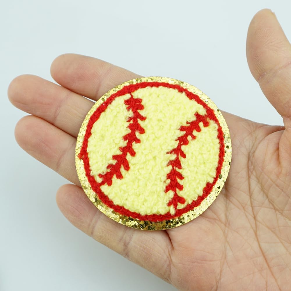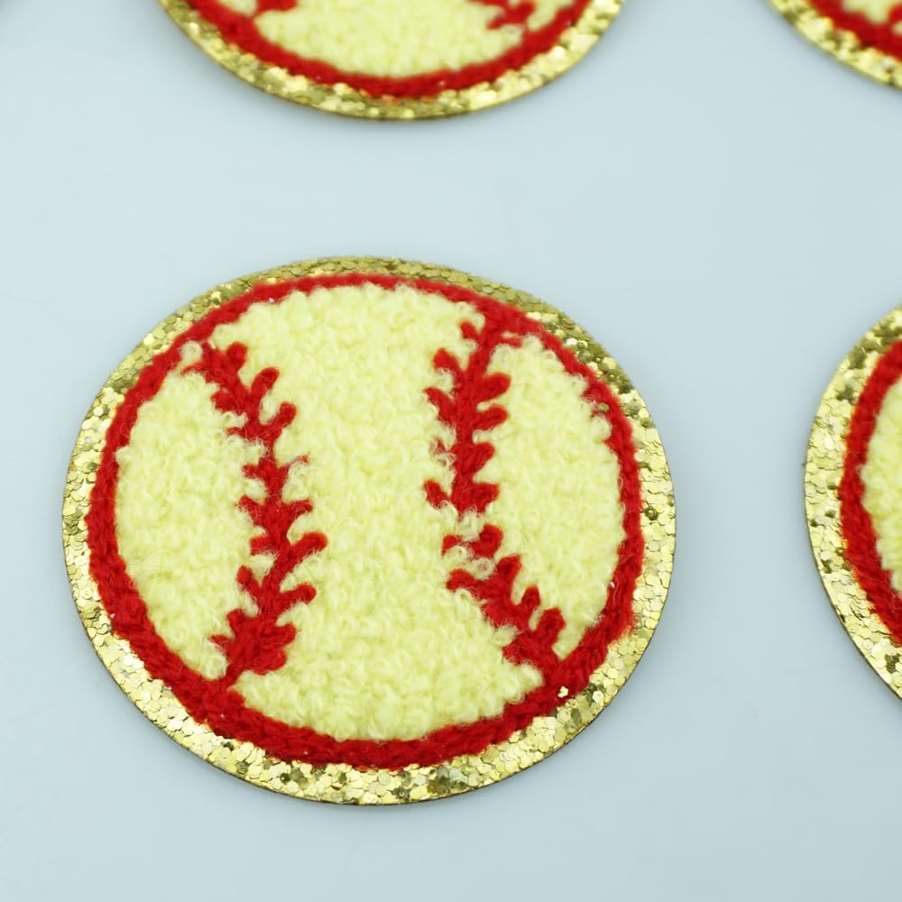 FAZHBARY 6 PCS Yellow Baseball Patches Gold Edges Baseball Iron On Patches Chenille Sew On Patches for DIY Repair Patch Clothes by FAZHBARY