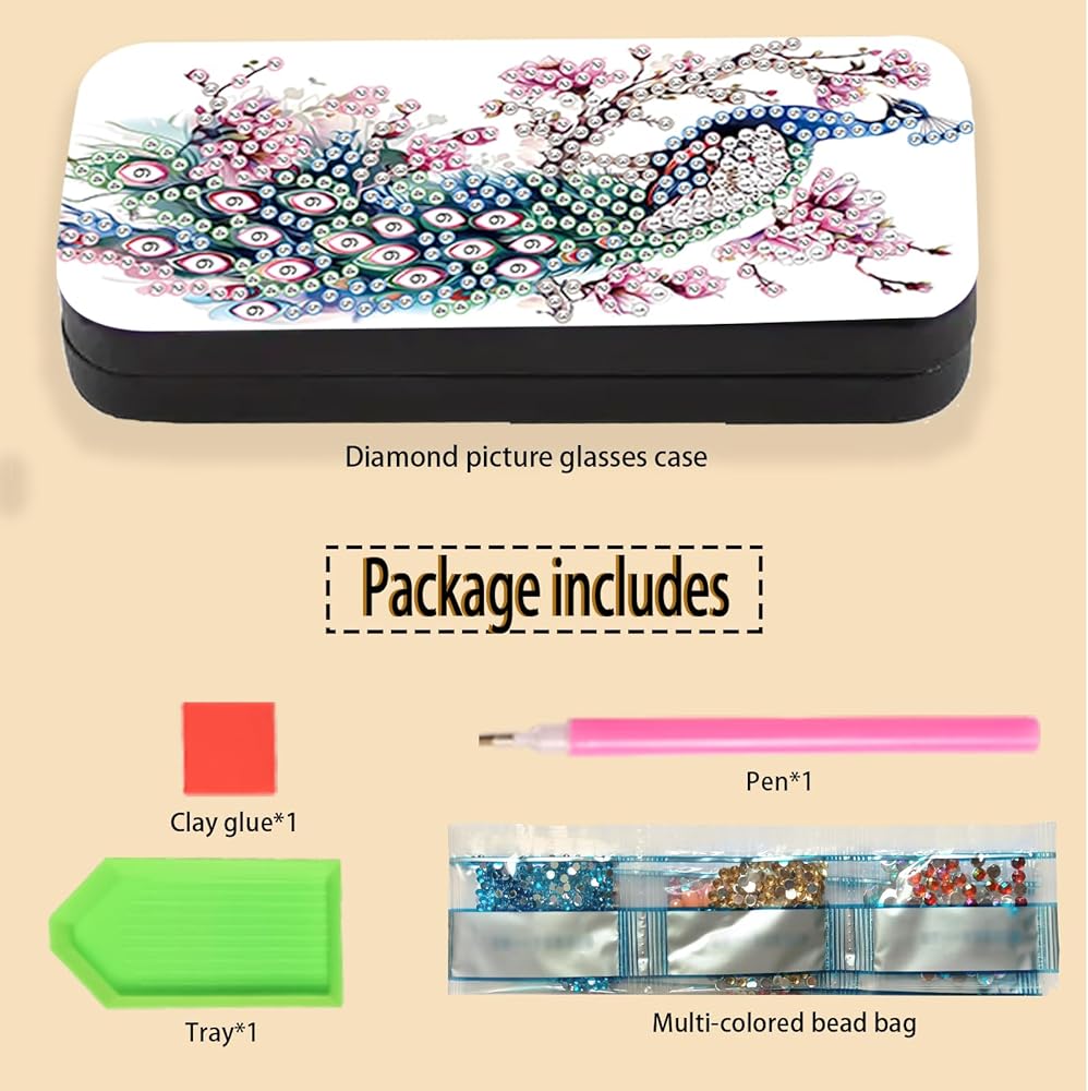 Package Contents—Our diamond art kits for adults sunglasses organizer/diamond painting accessories glasses case hard shell offers unmatched quality and reliable service. Our diamond painting kits eyeglass holder is equipped with 30% extra diamonds, don't worry about not being able to finish painting because you lost a few diamonds. It's both practical and beautiful. Each package includes: 1*diamond art glasses case, 1*clay glue, 1*tray, 1*pen, 1*diamond handbag. Size: 6.3×2.67×1.3in/16×6.8×3.5cm