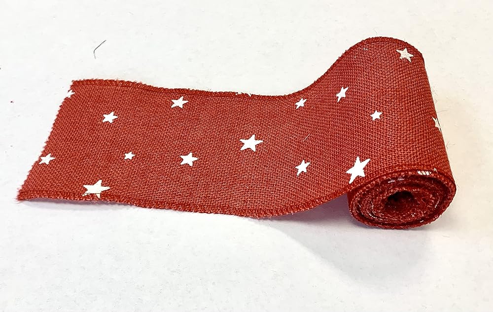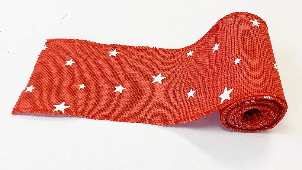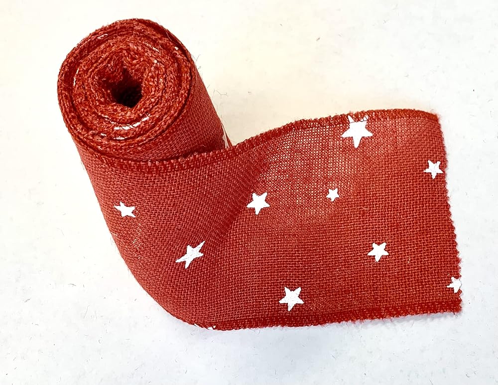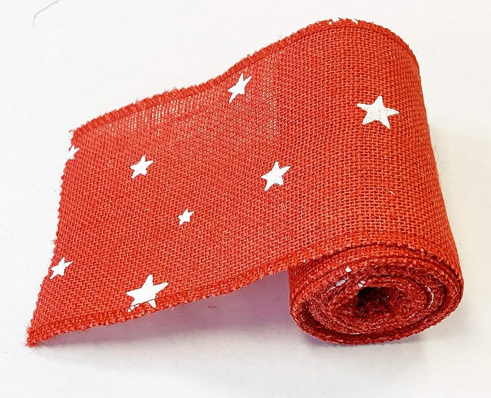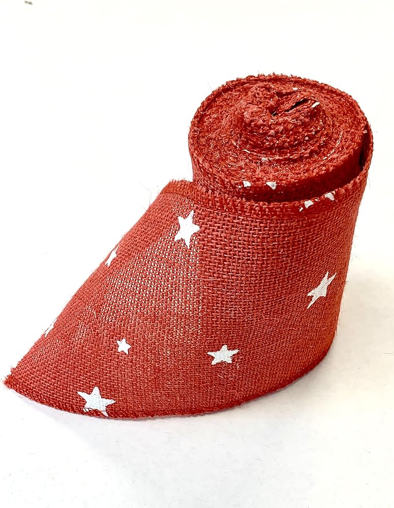 AAYU Star Printed Burlap Ribbon Rolls | Natural and Eco-friendly | Perfect for Parties, Weddings, DIY Crafts, and Holiday Decorations . The burlap fabric is 100% natural and biodegradable. It is made naturally from Jute fiber and used to create a variety of decorations. The sewn edges prevent fraying and unwinding. Pattern: Star Printed Burlap Ribbon Rolls Package Included: 3 X Burlap Ribbon Rolls Uses: 1. Suitable for creating rustic floral arrangements. 2. Apt for bow making to wrap gifts. 3. Easily used to make wall hangings and wreathes. 4. Used for garlanding. 5. Jute ribbon is an excellent choice for creative DIY projects.. 6. Use our environmentally friendly burlap as a front door decoration for parties or everyday decor.