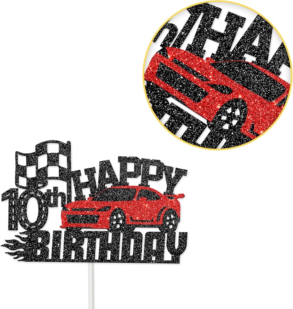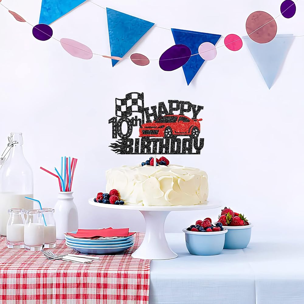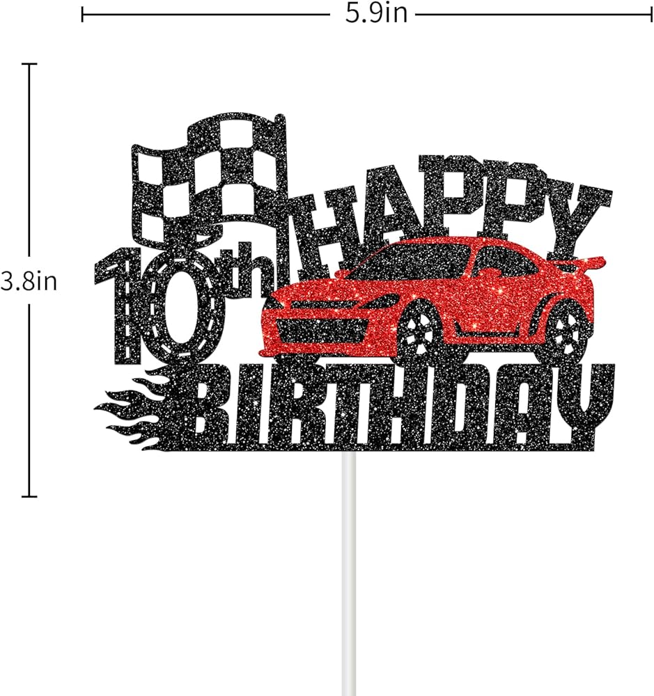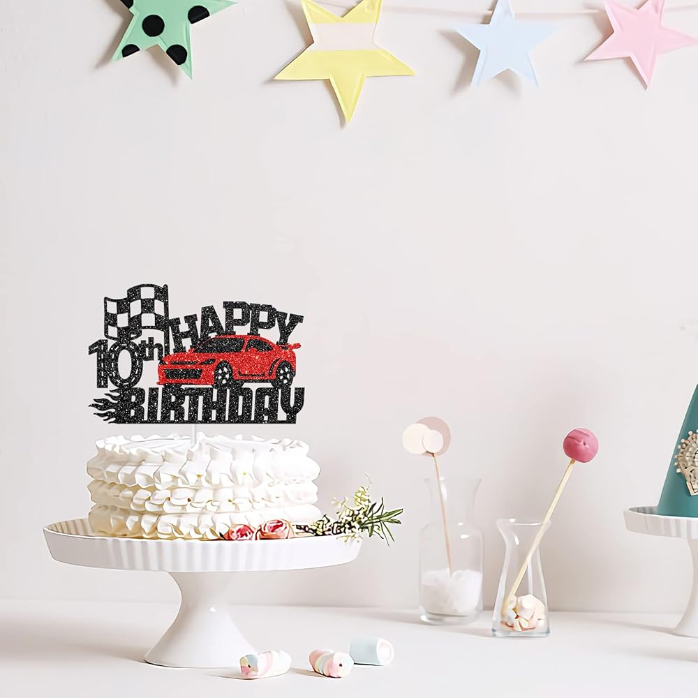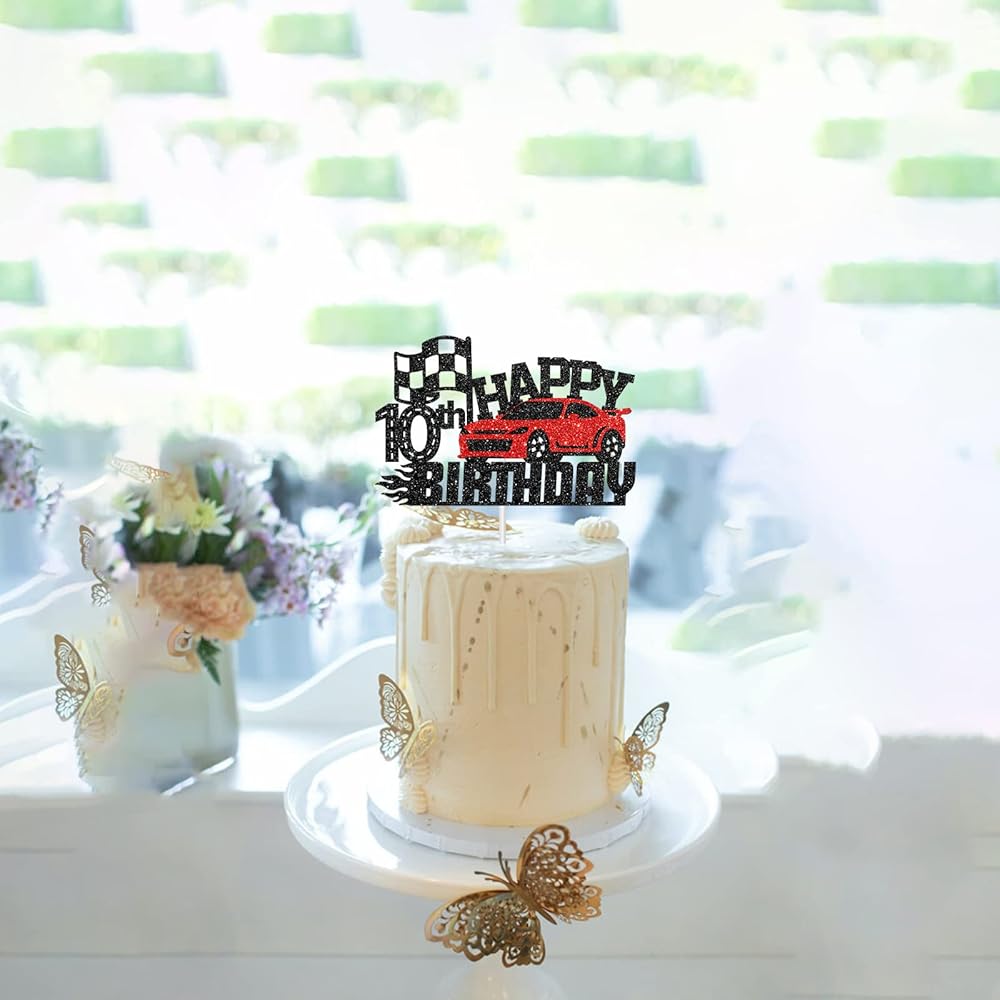 سباق سباق سعيد 10 عيد ميلاد الكعكة - موضوع سيارة عيد ميلاد ديكور كعكة ديكور لأولاد يبلغون من العمر 10 سنوات ، عيد ميلاد الفتيات - لوازم زخرفة حفلة عيد ميلاد الأطفال