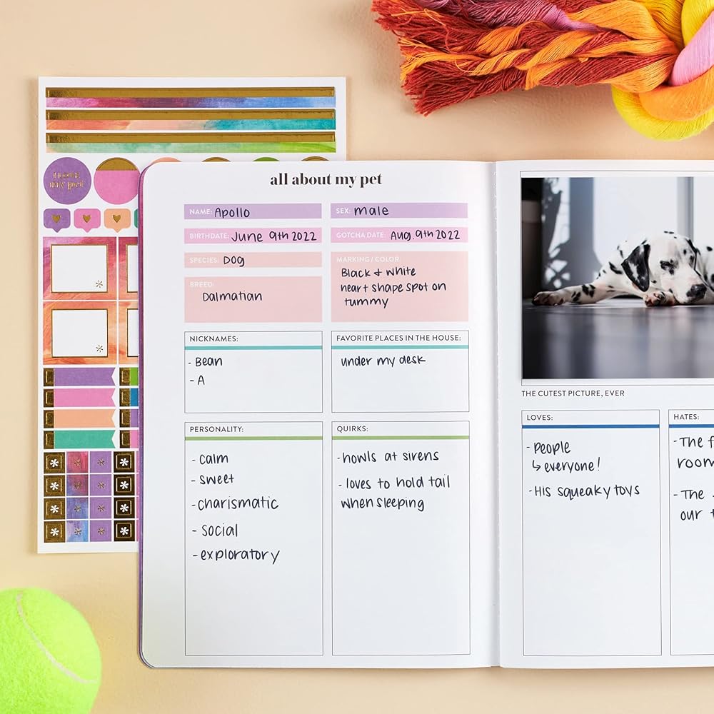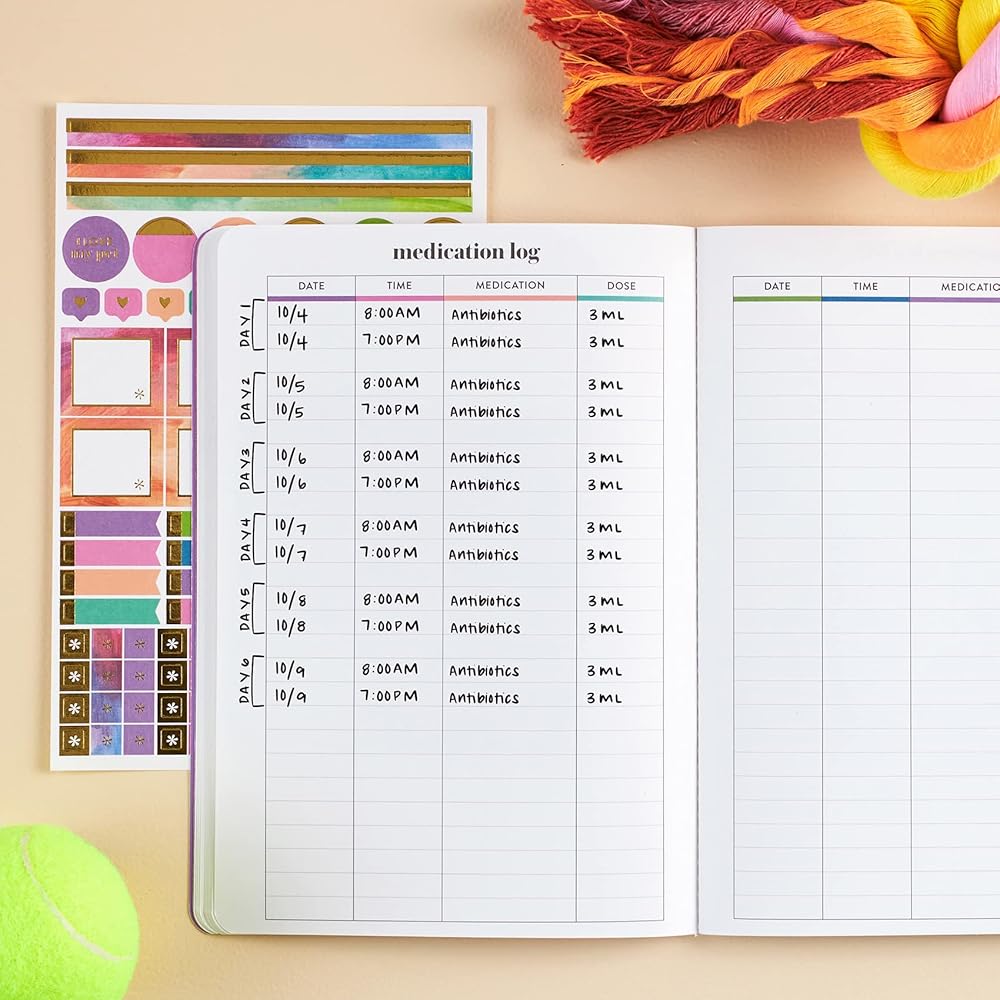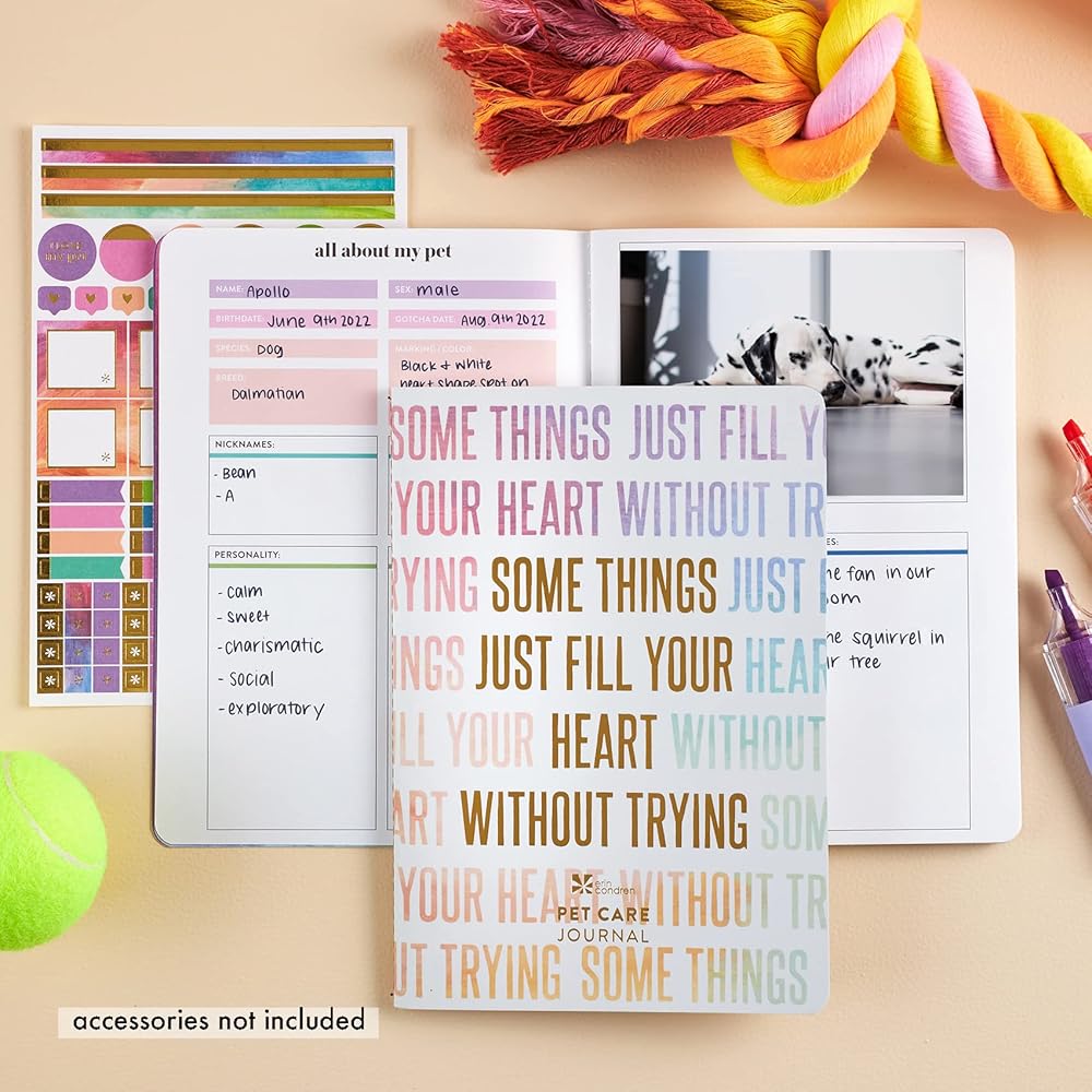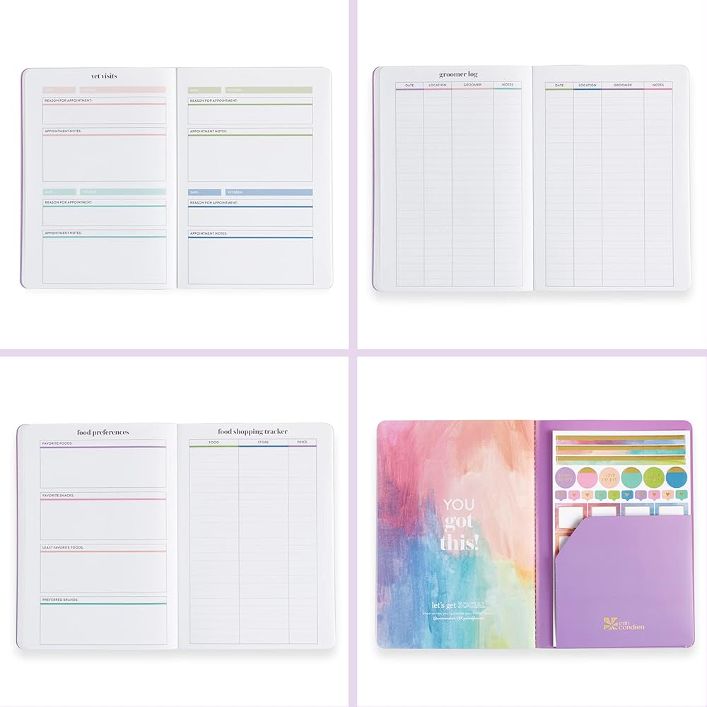 Pet Care Petite Planner. يضم كل شيء عن قسم الحيوانات الأليفة ، والتواريخ المهمة ، والمعلومات الطبية ، وزيارات الطبيب البيطري ، والتطعيم وسجلات الأدوية ، والملصقات والمزيد! مخطط صغير محمول من قبل إرين كوندرن