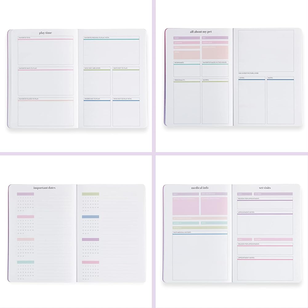 • مالك الحيوانات الأليفة الأساسي: يتيح مخطط Pet Care Petite أي من الوالدين للحيوانات الأليفة تتبع المعلومات الحيوية عن أصدقائهم الفرويين. يتضمن هذا الكتاب كل شيء عن قسم الحيوانات الأليفة ، وسجل المعلومات الطبية ، وتتبع زيارات الطبيب البيطري ، وسجلات التطعيم وسجلات الأدوية ، وسجلات العريس ، وتفضيلات الطعام ، ومسار التسوق الغذائي ، والاتصالات ، ومقبر النفقات ، وحفظ الذاكرة ، وأكثر من ذلك. سيبقيك هذا المتتبع وأصدقائك فرويين سعداء!