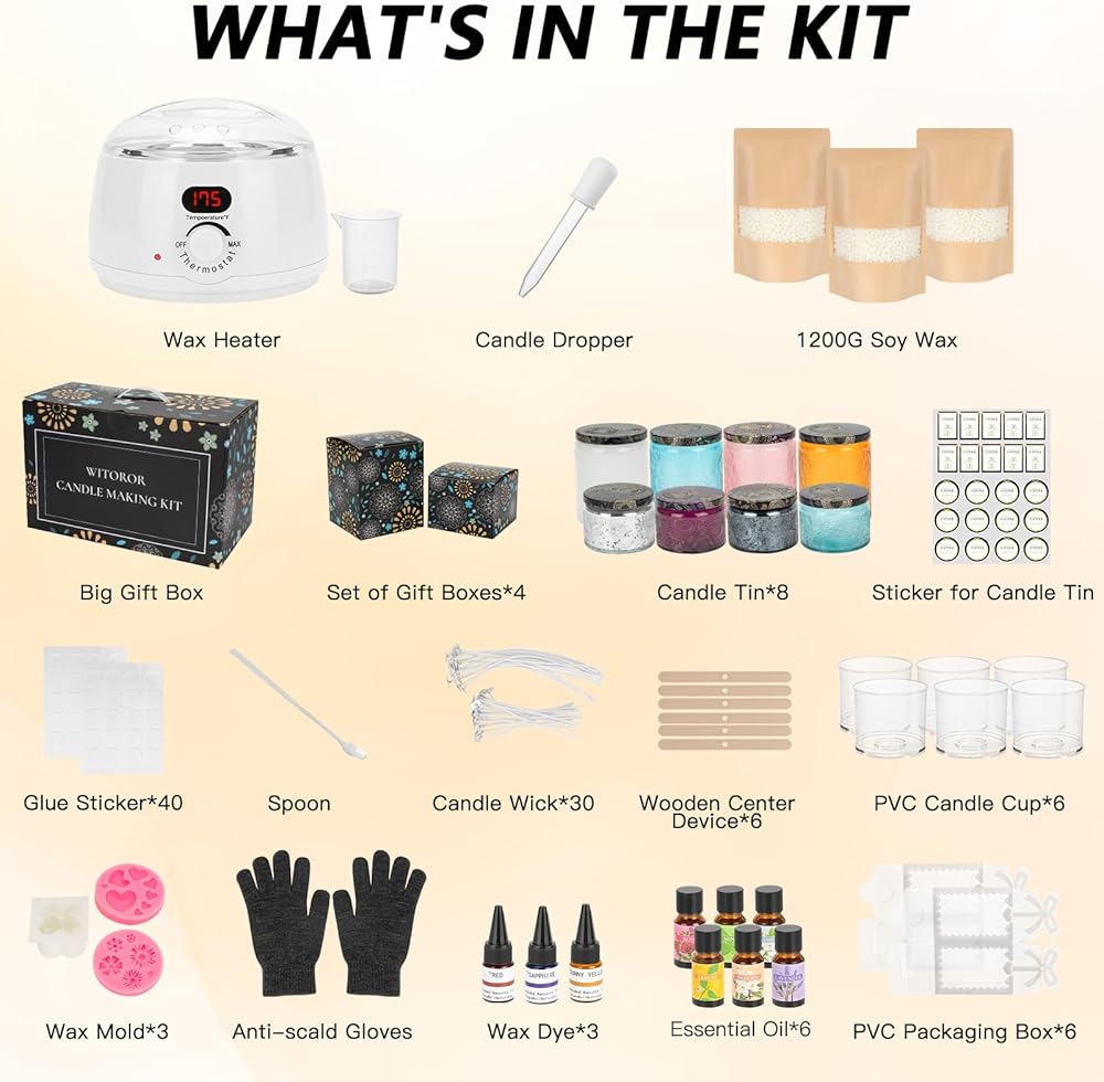 طقم صنع الشموع في Witoror ، وصنع الشموع اللوازم مع شمع الصويا الشمع الرقمي ذوبان شمعة دافئة صنع مجموعة كاملة للبالغين المبتدئين في بداية شموع صنع المعطرة لعيد الميلاد