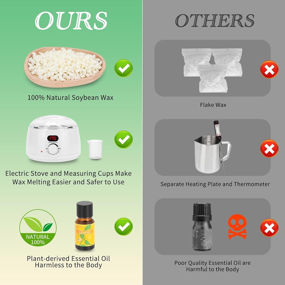 جميع شمع الصويا الطبيعي: شمع الصويا لدينا مصنوع من الشمع الطبيعي بنسبة 100 ٪ ، إنه يحترق بشكل جيد للغاية وليس له رائحة أثناء الاحتراق. يمكنك أيضًا إضافة زيوت أساسية لفترة طويلة من العطر.