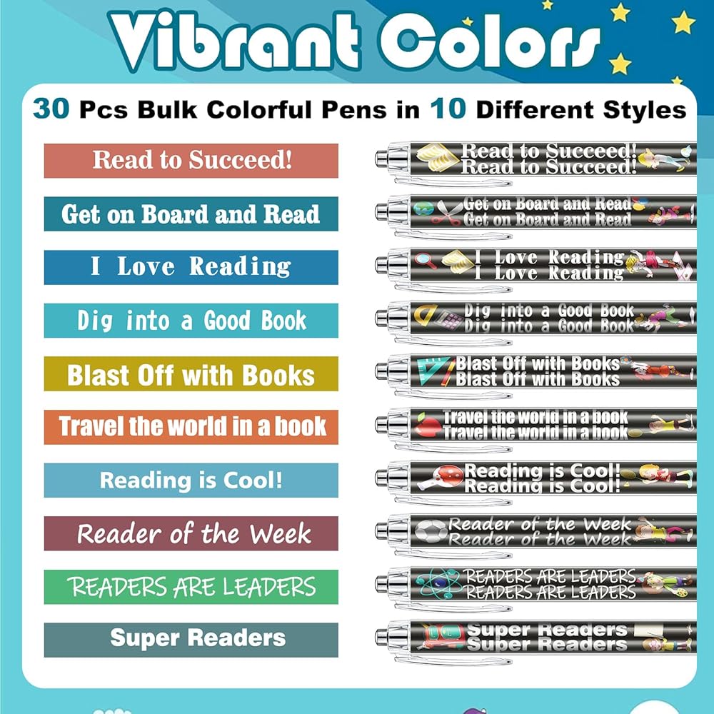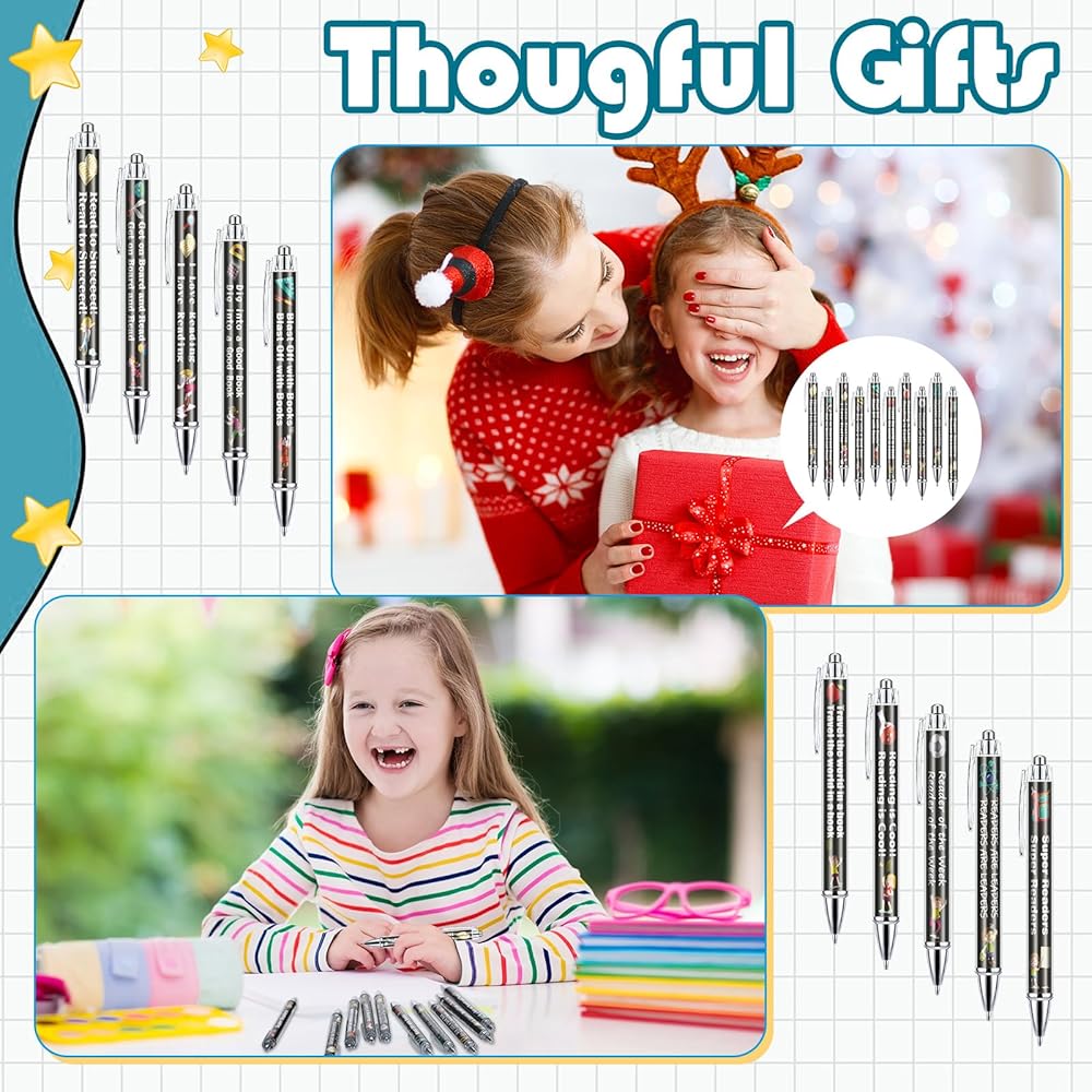The reading ballpoint pens for classroom have 10 different patterns and words, which can meet your daily writing needs, lightweight and portable, just place them on your backpack, convenient to carry and store.