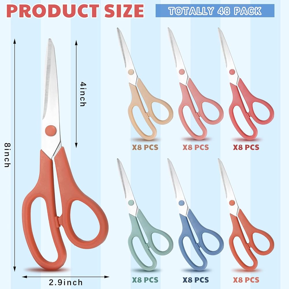 • Lightweight and Durable: these 8 Inch sharp scissors are not only lighter, but it is also stronger and sharper; Despite being lightweight, these scissors are sturdy enough for any of your cutting needs; The set includes 48 scissors suitable for most items that need cutting