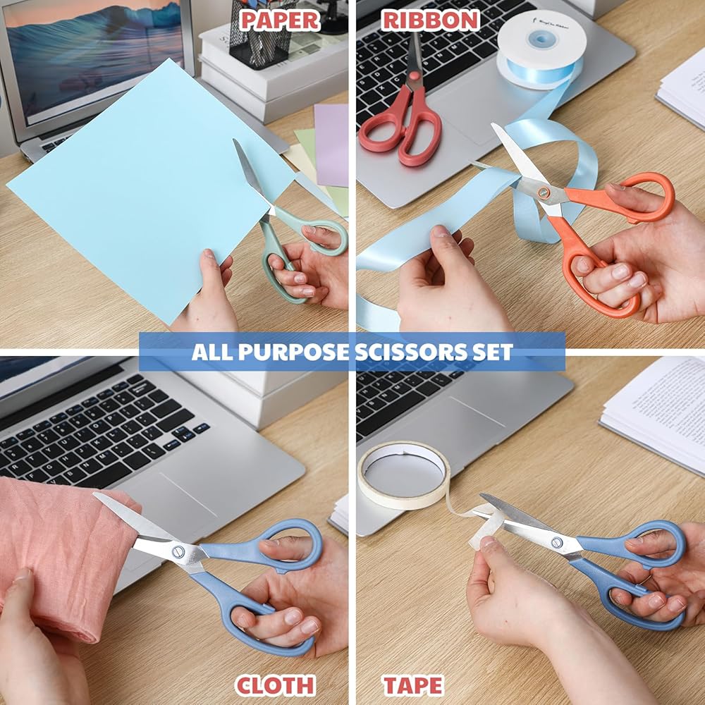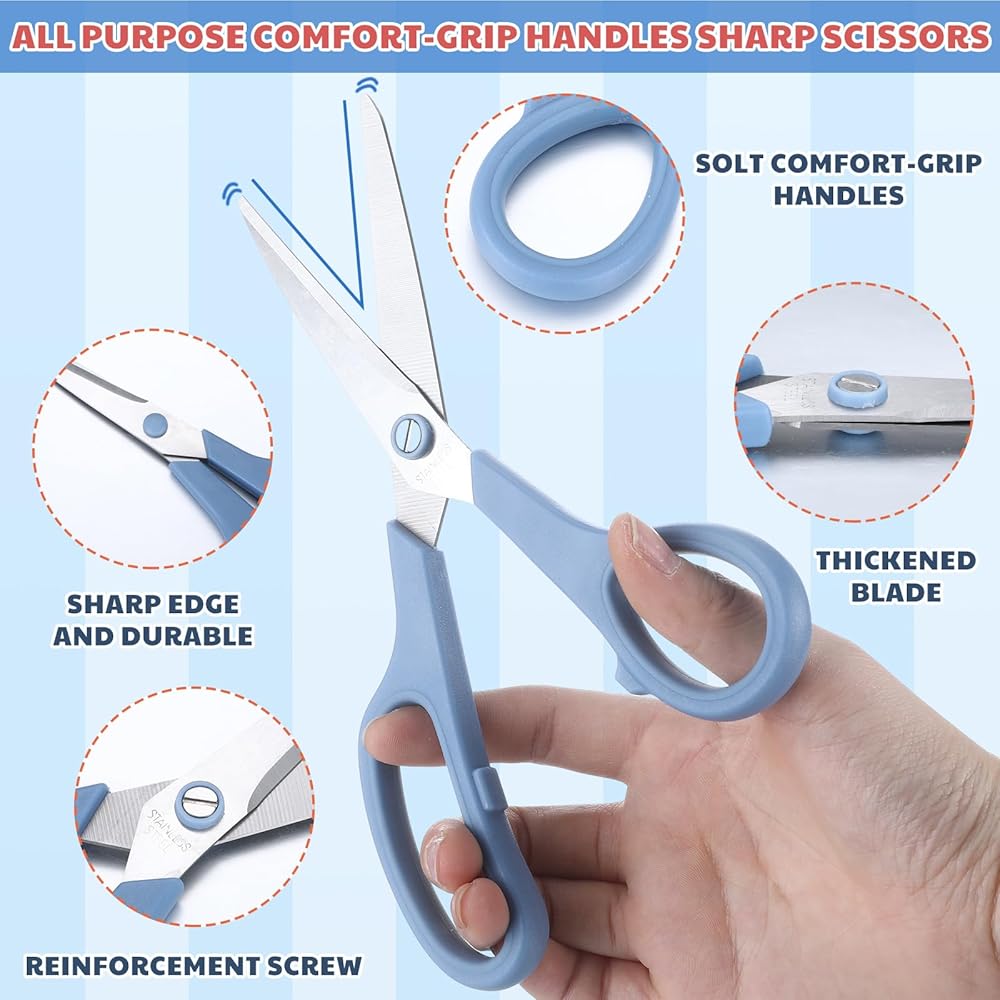• Comfortable and Versatile Use: the soft-grip handles provide a comfortable grip, suitable for both left and right-hand users; These are not just regular office scissors, but also functional as school scissors, home scissors and heavy duty craft scissors