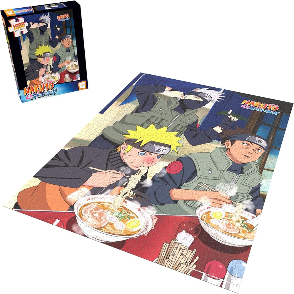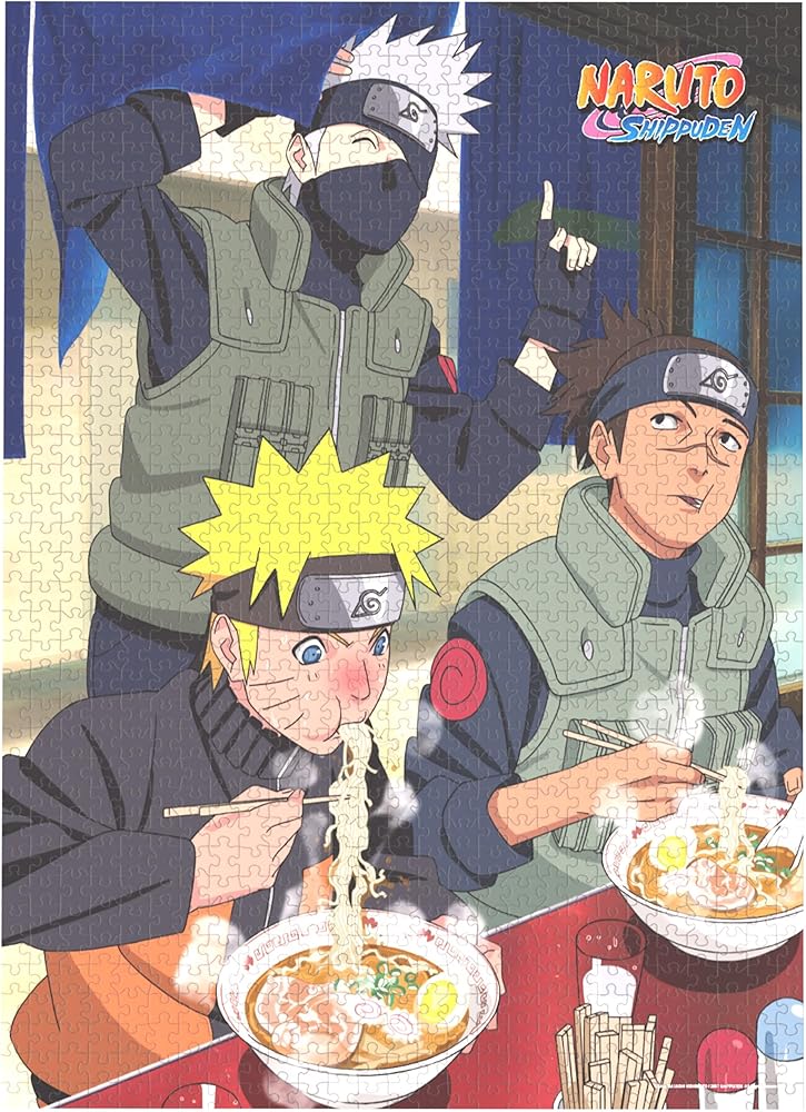 Join the three shinobi friends from the long-running anime in this Naruto Cant Stay Kids Forever 1,000-piece jigsaw puzzle, featuring Kakashi, Naruto, and Shikamaru Nara as he looks to deliver his aspirational line about one day becoming Master and treating others to ramen.