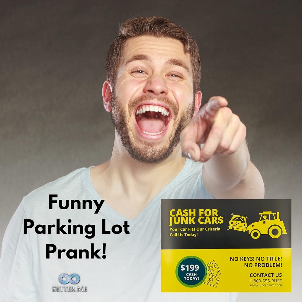 خداع السائقين للتفكير في أنك تريد إلغاء سيارتهم مقابل المال. نقدًا لبطاقات السيارات غير المرغوب فيها - ضع على أجمل السيارات التي يمكنك العثور عليها! شاهد أو سجل رد الفعل على النكات العملية