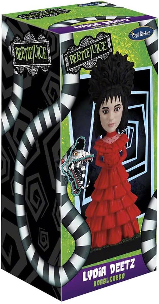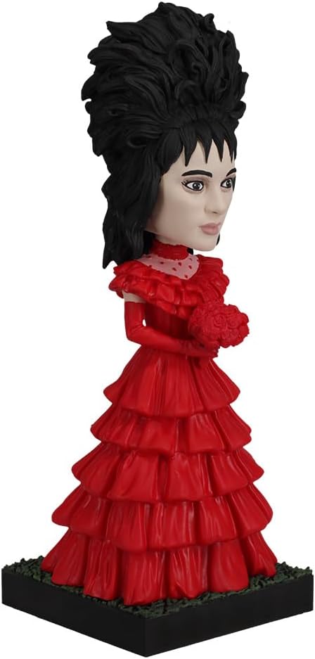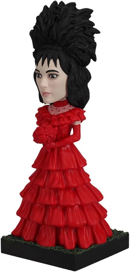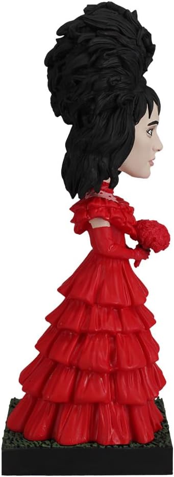 PREMIUM QUALITY COLLECTIBLE: Since 2009, Royal Bobbles has been renowned for creating exceptional collectible figurines, and the Lydia Deetz Red Wedding Dress Bobblehead is no exception. Crafted for both durability and intricate detail, this premium statuette allows fans to bring a touch of Beetlejuice's quirky charm and eerie elegance to any home or office. Perfect for adding a fun, spooky vibe to your space, Lydia will be sure to captivate and delight.